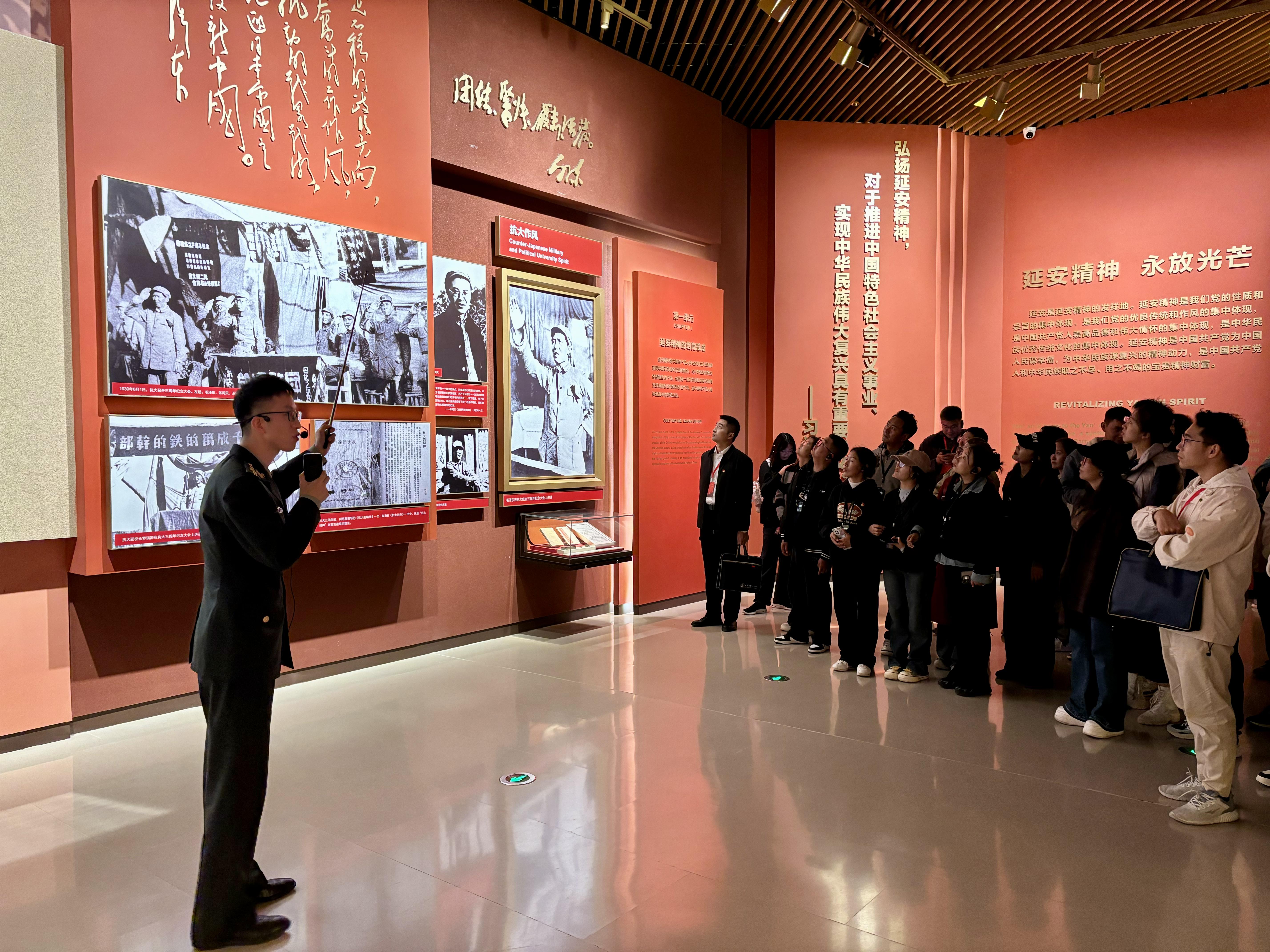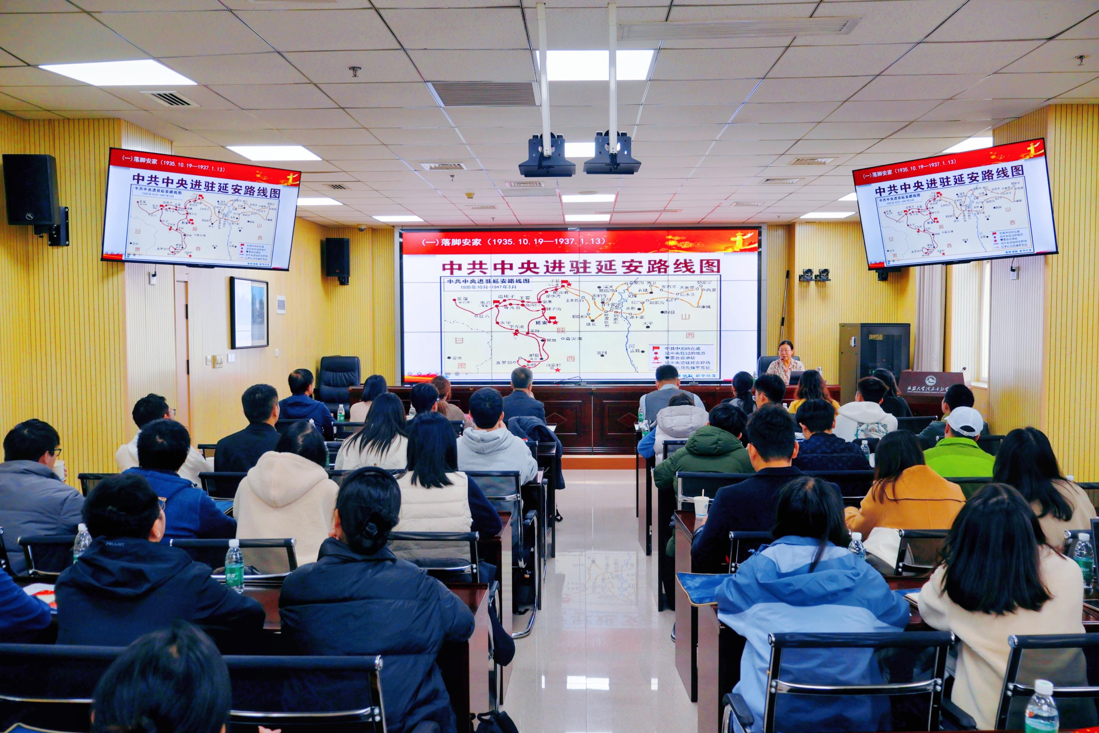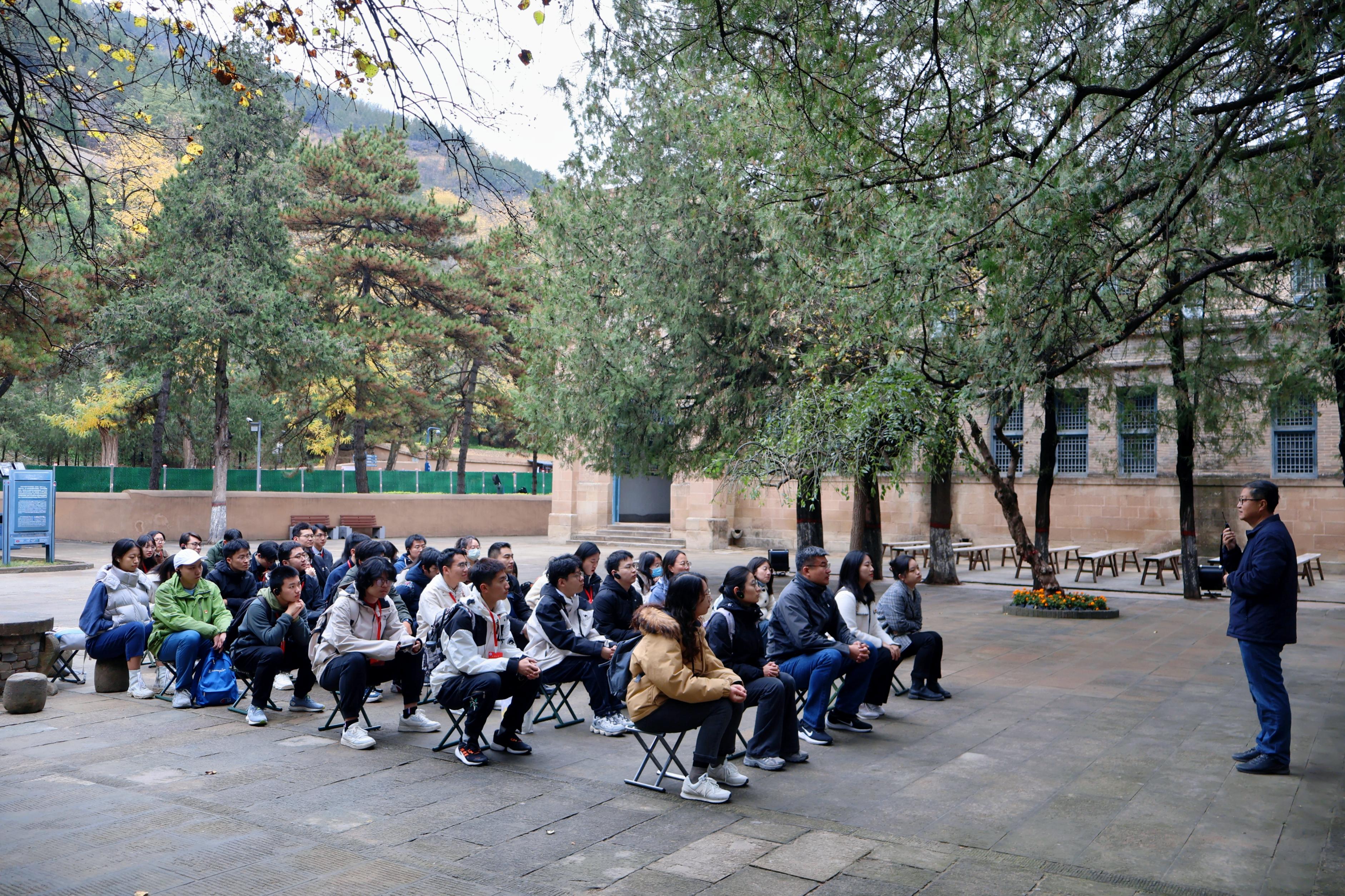 延安是中国革命的胜地,是新中国的摇篮。为坚持不懈用习近平新时代中国特色社会主义思想铸魂育人,传承红色基因、庚续红色血脉,银河Galaxy 党委与信息银河Galaxy 党委于2024年11月1日至3日组织师生党员赴延安开展党性教育培训。银河Galaxy 党委书记石德才,党委副书记、纪委书记肖晶,科技哲学逻辑学教研室联合党支部书记杨武金教授,团委书记、党务秘书蔡欣欣,科研秘书庞宇,外事秘书金瑜萌;信息银河Galaxy 党委副书记、纪委书记武洋,专职组织员韩赛赛;各学生党支部书记及党员代表共45人参加教育培训活动。