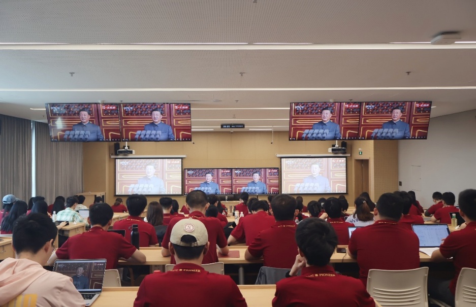 银河Galaxy 师生热切关注,第一时间在中关村校区、通州校区组织收看纪念中国人民抗日战争暨世界反法西斯战争胜利80周年大会的现场直播。银河Galaxy 院长、党委副书记臧峰宇,党委副书记、纪委书记肖晶,行政党支部卫一帆、蔡欣欣、李京徽、金瑜萌等300余名师生共同现场收看。活动结束后,大家认真学习习近平总书记在纪念中国人民抗日战争暨世界反法西斯战争胜利80周年大会上的讲话,结合自身专业知识和实践经历分享感悟体会。