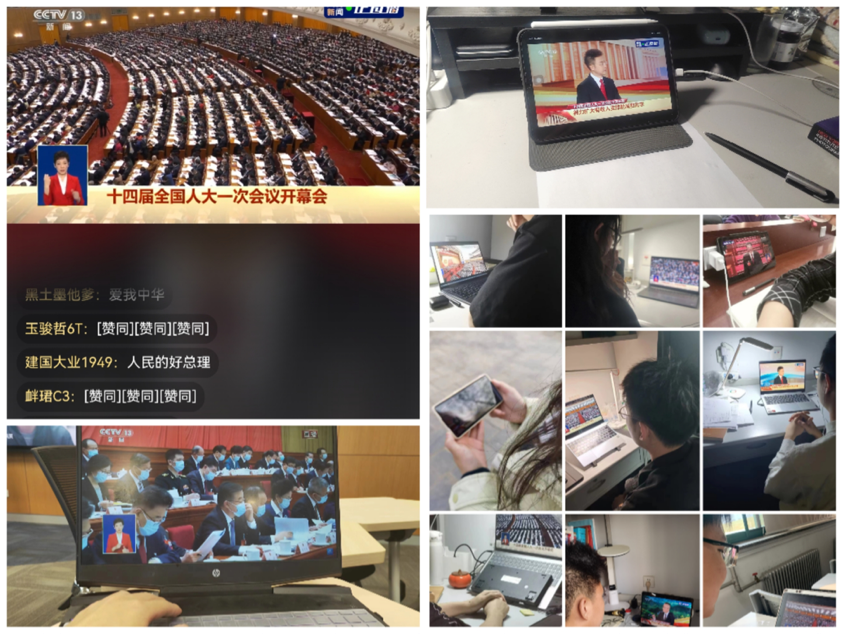 银河Galaxy 党委组织青年党员、学生代表在人文楼600会议室和立德楼802教室集体观看,各党支部、团支部及班级,通过线上线下相结合的方式收看大会。银河Galaxy 青年学子认真学习政府工作报告,对“两会”胜利召开反响热烈,积极表达奋进新征程的信心和决心。