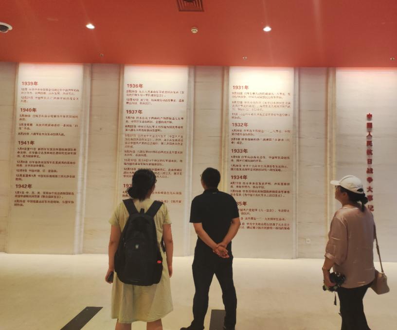 在中国人民抗日战争纪念馆内,一幅幅图片、一件件文物、一座座雕塑以及大量视频影像再现了中国共产党在民族危亡之际挺身而出,同日本侵略者进行的英勇斗争和艰苦卓绝的抗战之路。大家在展板前不时驻足观看、分享交流,深刻领悟中国共产党人的力量源泉,从中汲取强大的精神力量。大家被共产党人百折不挠、血战到底的英雄气概深深震撼,一直挂在嘴边的就是“没有共产党就没有今天的幸福生活”。