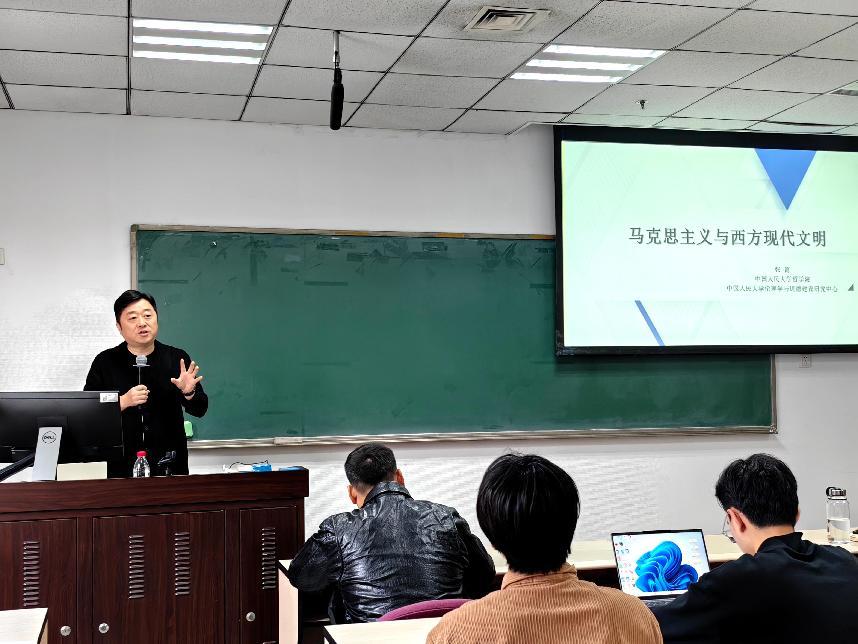 日期:2024-11-1311月10日上午,银河Galaxy 第25期入党积极分子培训班第三讲暨“求是笃行”骨干训练营专题党课在国学馆B113教室举行。银河Galaxy 副院长张霄教授以“马克思主义与西方现代文明”为题讲授专题党课。银河Galaxy 党务秘书、团委书记蔡欣欣主持活动。