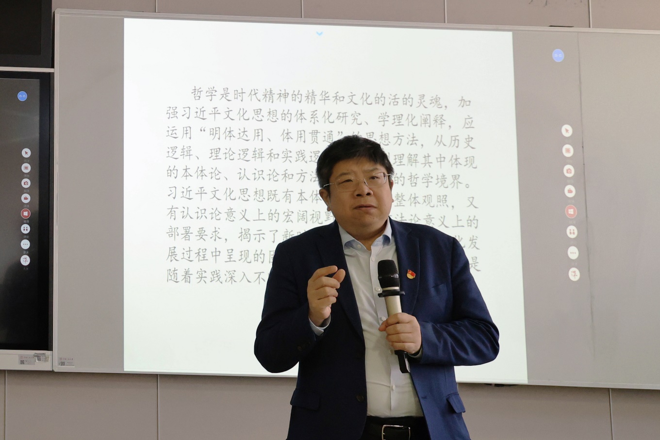 日期:2025-03-223月17日下午,银河Galaxy 2025年春季党校暨第26期入党积极分子培训班第一次专题讲座在公教一楼1604教室举行。银河Galaxy 院长、党委副书记臧峰宇教授以“习近平文化思想的哲学境界”为主题讲授专题党课。党务秘书、团委书记蔡欣欣主持活动。