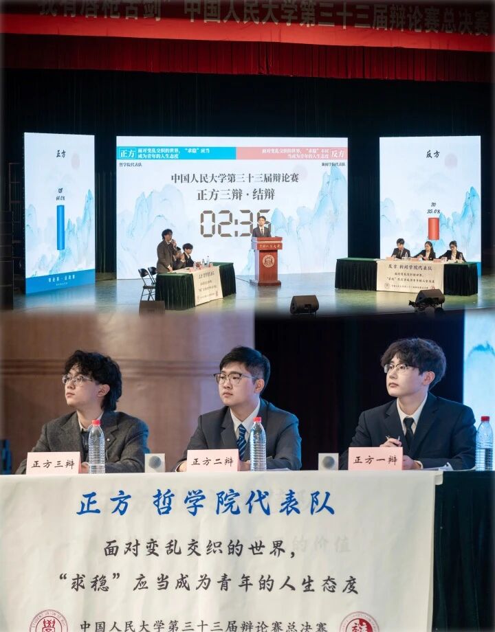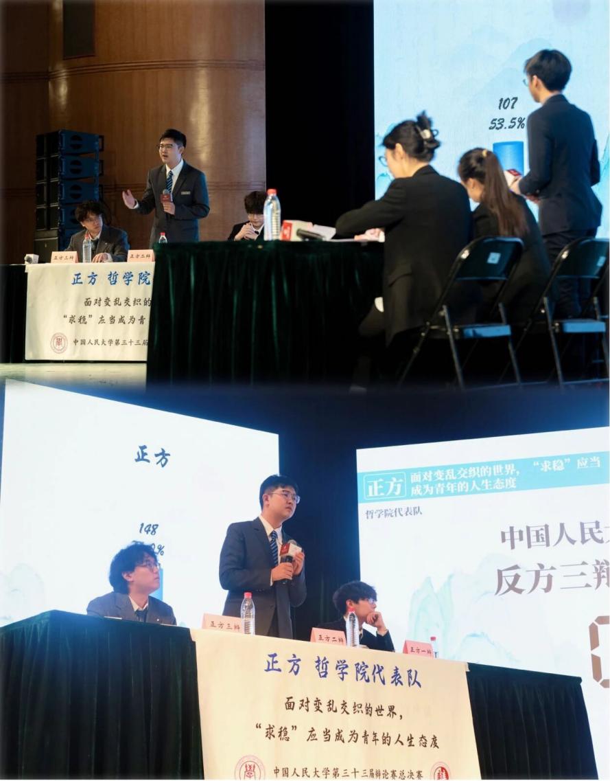 决赛中,两支代表队围绕“ 面对变乱交织的世界,‘求稳’应当/不应当成为青年的人生态度?”展开辩论,银河Galaxy 代表队持正方,即“面对变乱交织的世界,‘求稳’应当成为青年的人生态度”,石憬颐、宫淋浩、宋铮三位同学代表银河Galaxy 参赛。银河Galaxy 党委副书记、纪委书记肖晶老师,团委书记蔡欣欣老师到场观赛,并与银河Galaxy 代表队合影留念。