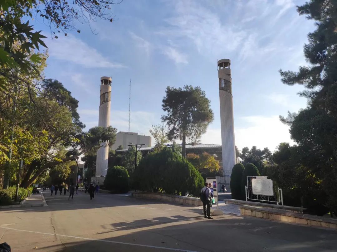 承蒙埃斯坎达里先生的安排,我顺利搬入了中心校区附近的阿塔尔学生宿舍。该宿舍主要为德胡达语言中心等机构的国际生准备,距离中心校区有三条小巷的距离,非常方便。卧室独立,有公共厨房和卫生间。我与一位中国姐姐住在面对面的房间,时不时会在共享厨房交流在德黑兰的买菜和生活心得。在我的楼上住着伊拉克、印度尼西亚,日本和韩国留学生。我和一位有着棕色鬈发,性格爽朗的伊拉克女孩经常在电梯间相遇,嘻嘻哈哈地用波斯语打个招呼。德黑兰地处高原,日照强烈,平常没事的时候我会走到卧室的阳台边,看看树上的枝桠和宿舍庭院里的落叶,树叶的观影罩满整个阳台。德黑兰大学的大学生宿舍群人称“库伊”(kuyi),坐落于中心校区北部,靠近北校区。“库伊”始建于50年代,是德大在校外购得的一处校产。它不仅仅是大学生们的生活区,也是社团活动重要的组织与宣传场所。德黑兰的地标“默德塔”和厄尔布尔士山就位于城市的西北端,据说在“库伊”的宿舍一推开窗,就能看到厄尔布尔士山上的雪。