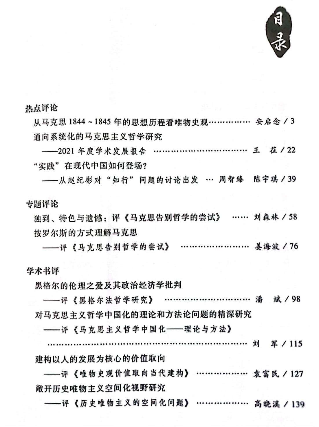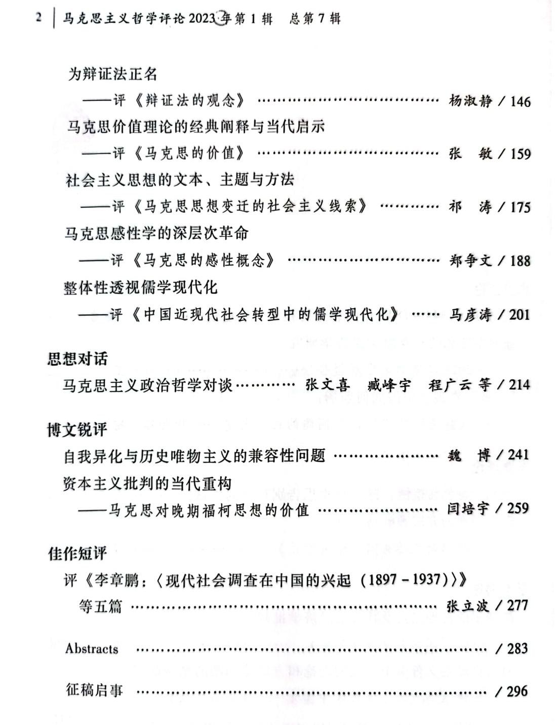 新刊:《马克思主义哲学评论》2023年第1辑(总第7辑)出版