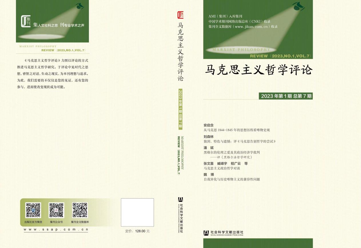 《马克思主义哲学评论》2023年第1辑(总第7辑),社会科学文献出版社,2023年8月。