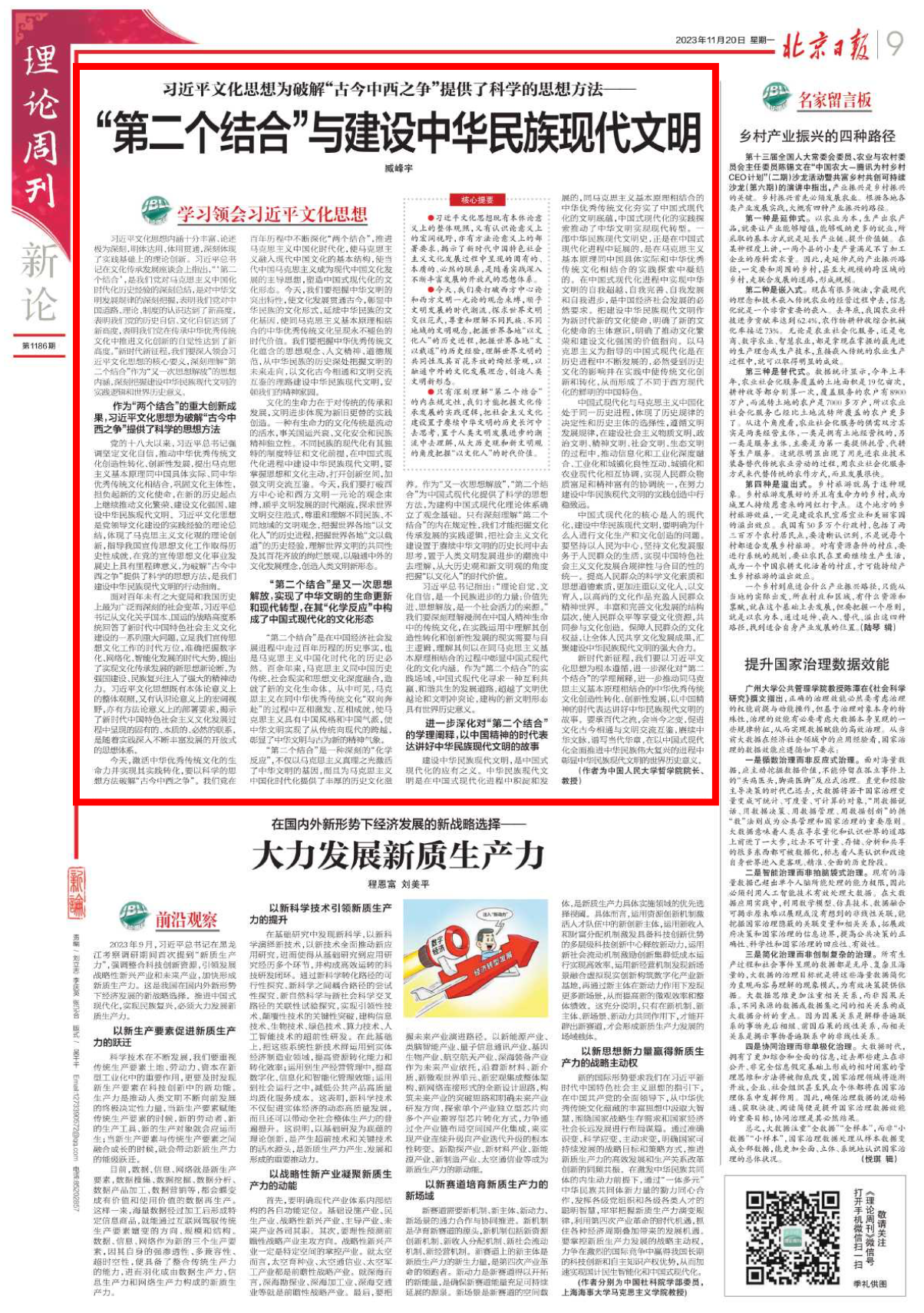 “第二个结合”是又一次思想解放,实现了中华文明的生命更新和现代转型,在其“化学反应”中构成了中国式现代化的文化形态