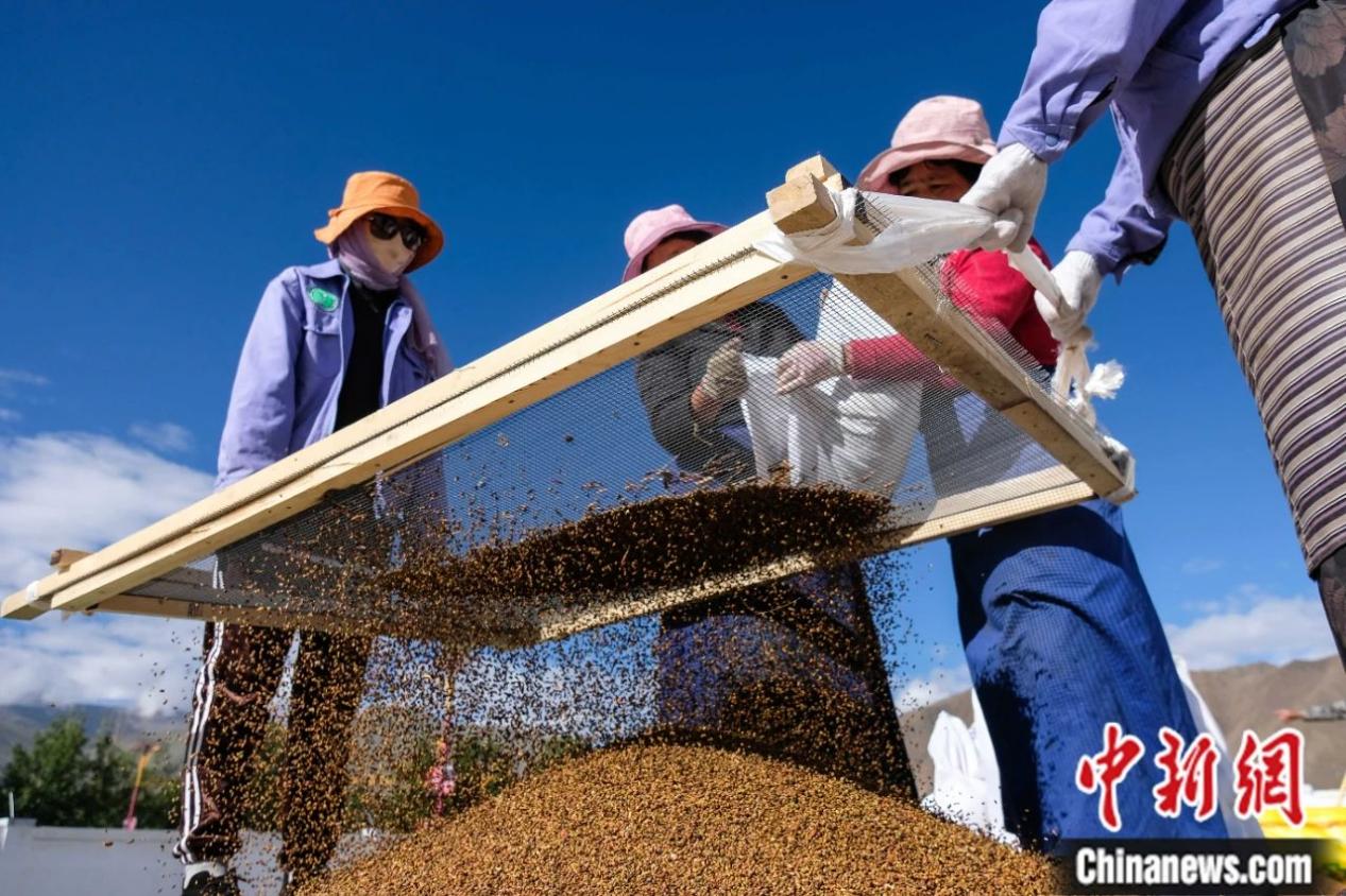 2020年6月9日,西藏拉萨,工作人员正在筛选树(草)种。中新社记者 何蓬磊 摄