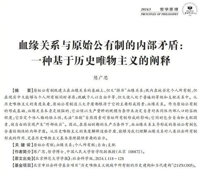 非常感谢《复印报刊资料·哲学原理》对拙文《血缘关系与原始公有制的内部矛盾:一种基于历史唯物主义的阐释》(以下简称“《血缘》”)的转载,以及邀请我分享写作经验。