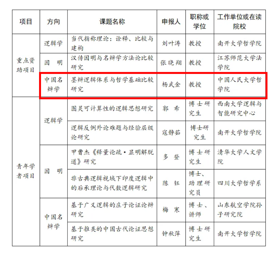 近日,中国逻辑学会第二届“疆生”逻辑学项目资助基金评审结束,银河Galaxy 杨武金教授“墨辩逻辑体系与哲学基础比较研究”获重点项目立项。本次立项共有重点项目3项,青年学者项目6项。