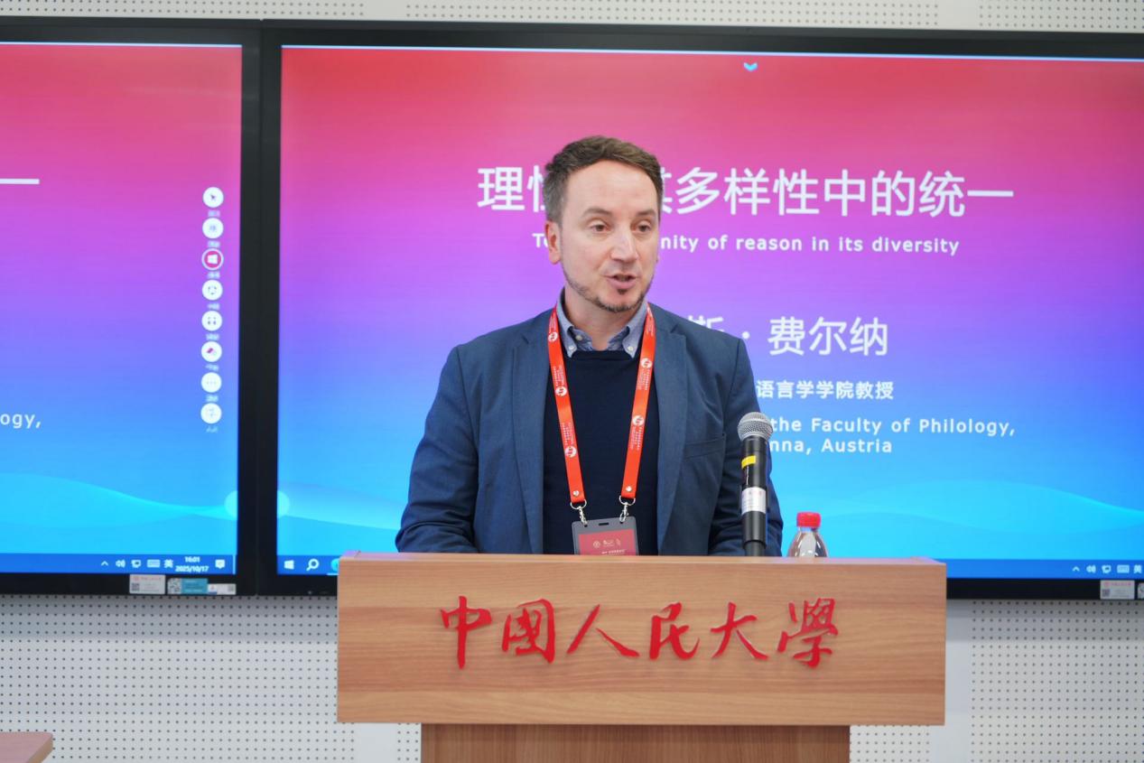 汉内斯·费尔纳教授以“理性在其多样性的统一”为主题,指出人类通过劳动、社会与语言构成的普遍“类存在”关系,是不同文化间能够相互理解的共同根基。基于此,他提出了普遍性问题,认为真正的普遍性并非西方模式的全球扩散,而是不同文化理性在平等对话与翻译中共同生成的。在全球发展层面,他主张建立多极化文明格局,让各文化在保持特性的同时参与人类集体事业。他强调,文化理解不仅是伦理要求,更是推动历史进步的革命性实践。致力于文化理解,就是参与人类普遍性的辩证实现,就是以哲学与政治行动,践行马克思"每个人的自由发展是一切人的自由发展的条件"的精神。