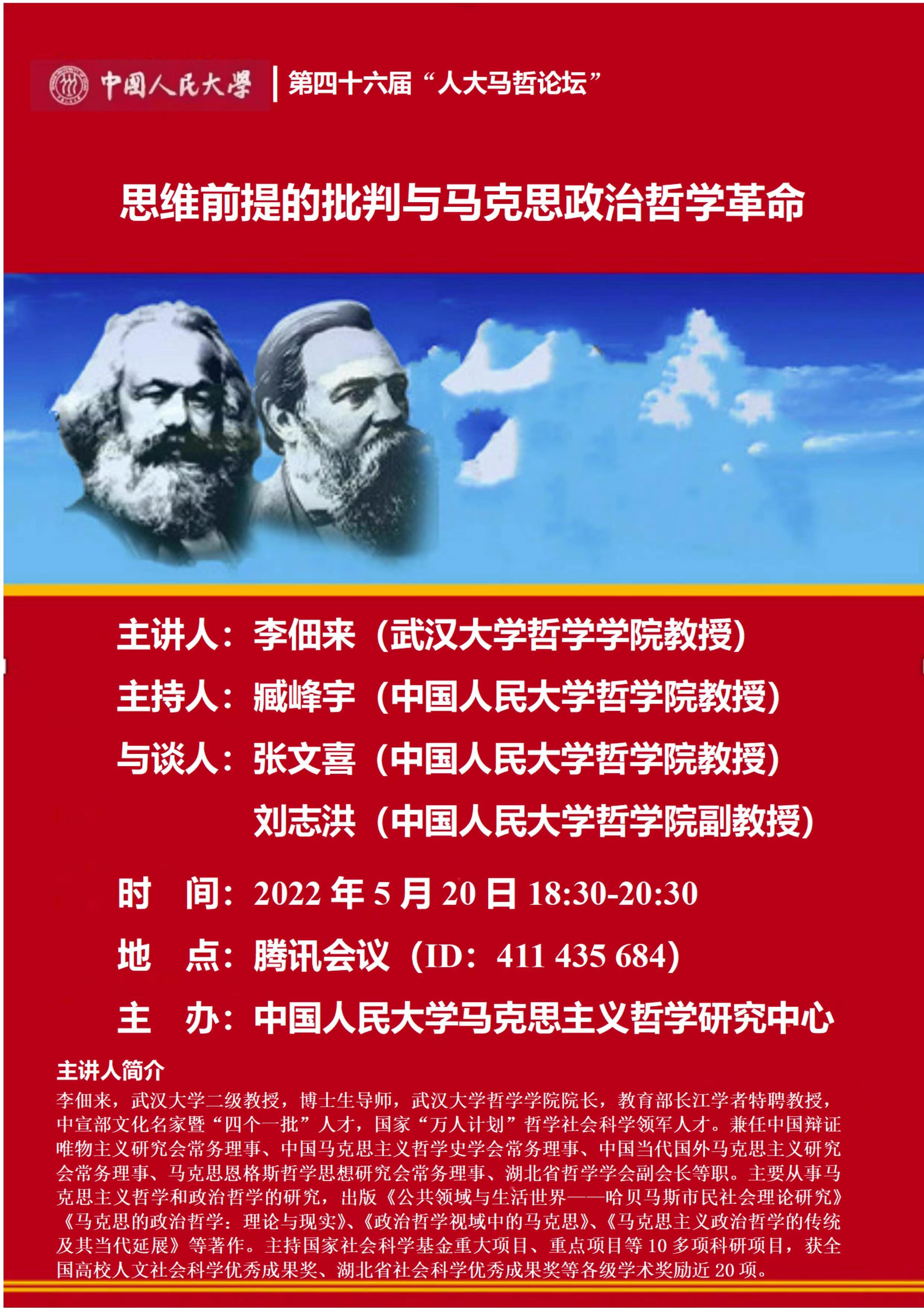 预告 | 第四十六届“人大马哲论坛“ 思维前提的批判与马克思政治哲学革命