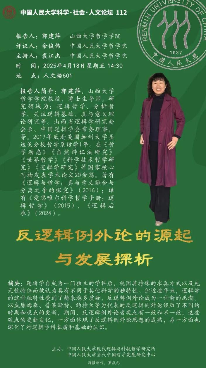 预告丨中国人民大学科学·社会·人文论坛 112丨反逻辑例外论的源起与发展探析