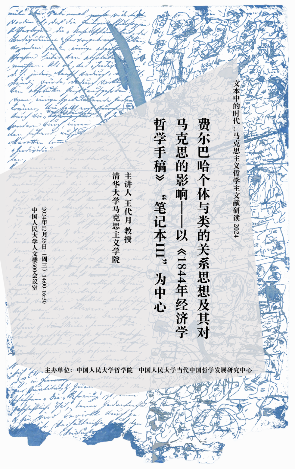 预告|王代月:费尔巴哈个体与类的关系思想及其对马克思的影响——以《1844年经济学哲学手稿》“笔记本III”为中心|文本中的时代:马克思主义哲学主文献研读系列讲座