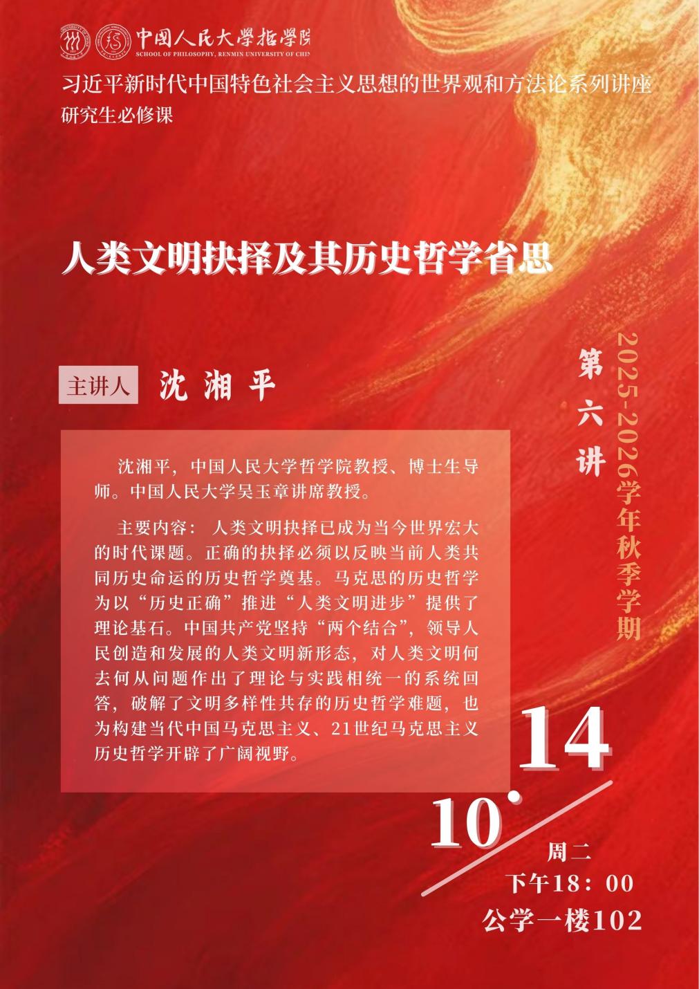 第六讲 丨人类文明抉择及其历史哲学省思 丨习近平新时代中国特色社会主义思想的世界观和方法论系列讲座