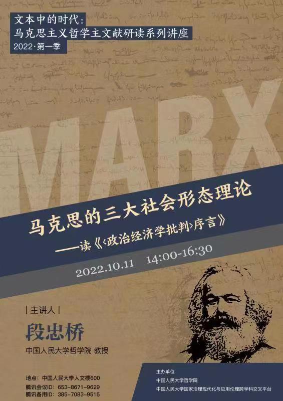 预告 | 段忠桥:马克思的三大社会形态理论——读《<政治经济学批判>序言》|文本中的时代:马克思主义哲学主文献研读系列讲座第一季