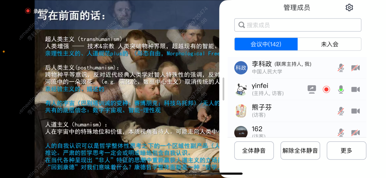 之后,王咏诗老师对王小伟老师的问题给予了回应。王老师指出,人类学在本报告中有两种含义,一种是作为学科意义上的人类学,另一种是所谓“人类学的”,把整个哲学的追问方式还原到某个点,即“人”,也就是“哲学人类学”。她认为康德哲学虽然与哲学人类学具有亲缘性,但跟这样一种追问方式仍然保有距离。康德最终还是把人类学视为了某种部门学科,所以在整个学科体系中特别指派了“实用人类学”,将人类学从形而上学中剥离了出去,但这不意味着人类学思考与康德的形而上学思考没关系。康德理解的学科意义上的人类学,与他的体系构想相关,他将人理解为一种有限的理性存在者,有限跟我们人的感性接受性有关,而理性则是一种趋于无限的能力,并且这样一种理性更多指向一种道德能力,两种能力不能混同。由此而来,他将人的实践分为了“技术上实践的”和“道德上实践的”,也就是人的自然部分和自由部分,而他对“人是什么”的回答就立足于这两种规定在人身上共舞的状态。换言之,人身上既有道德性的一面,也有技术性的一面,如果忽略了后者,可能会变成道德狂热者,如果忽略了前者,那就是“知性的僭妄”,从而产生各种迷误。在这种意义上,康德所理解的人类学就带有中介性的特征,能够把看似割裂的“自然学说”和“道德学说”粘合起来。此外,王老师结合电影《奥本海默》对科学家的人道问题予以说明。“哲学的眼光”更多强调对知识运用到世界上的那种能力,不仅仅是超然的旁观,而是参与到世界中去的目的论视角。王老师认为康德的立场充分肯定了科学家的探索对人类福祉的贡献,但仅仅有这些部门知识是不够的,知识本身并不允诺它何以能够恰当地运用于我们所处的世界。科学研究就其真理性和严肃性而言是要尽量排除人的因素,保持为超然的旁观,当科学家在考虑其发现或发明是否有益于人类福祉时,他的身份其实就已经转换了。一般情况下,二者并不冲突,只是功能不同。康德所担心的科学中“人道的丧失”并不是指科学家的知识探索就是不人道的,而是担心科学探究超逾自身的限度,完全以自然的方式去讨论道德,甚至无视自由和道德,仅仅将人视为适应性的动物,碎片化、机械化地对人以及人类社会进行思考。这种不将人整体上视为目的的做法至少在康德看来这是不可取的。