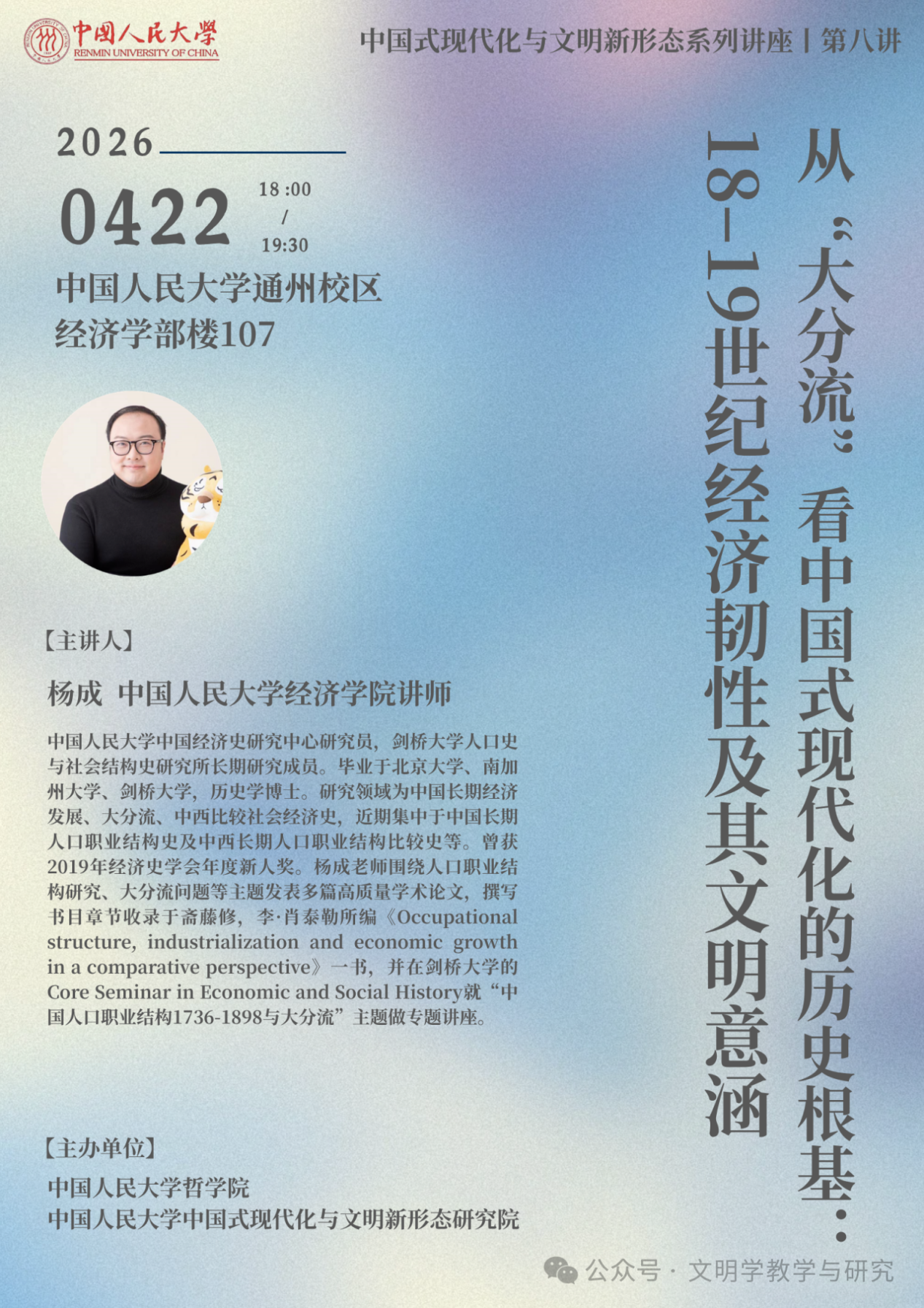 中国式现代化与文明新形态系列讲座第八讲丨从“大分流”看中国式现代化的历史根基:18–19世纪经济韧性及其文明意涵