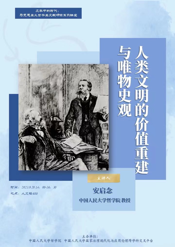 预告丨安启念:人类文明的价值重建与唯物史观丨文本中的时代:马克思主义哲学主文献研读系列讲座