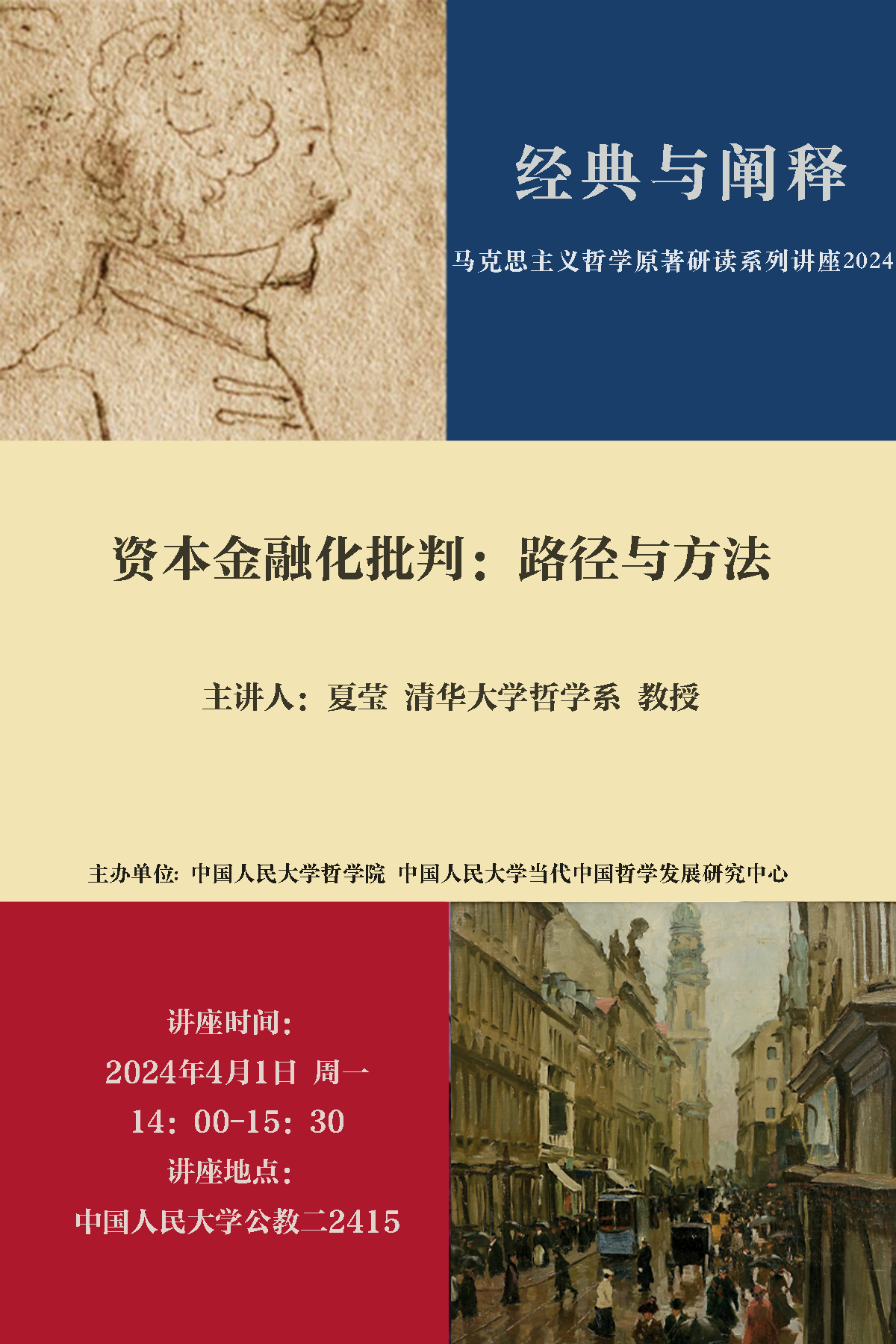 日期:2024-03-29预告 | 夏莹:资本金融化批判:路径与方法|经典与阐释:马克思主义哲学原著研读系列讲座