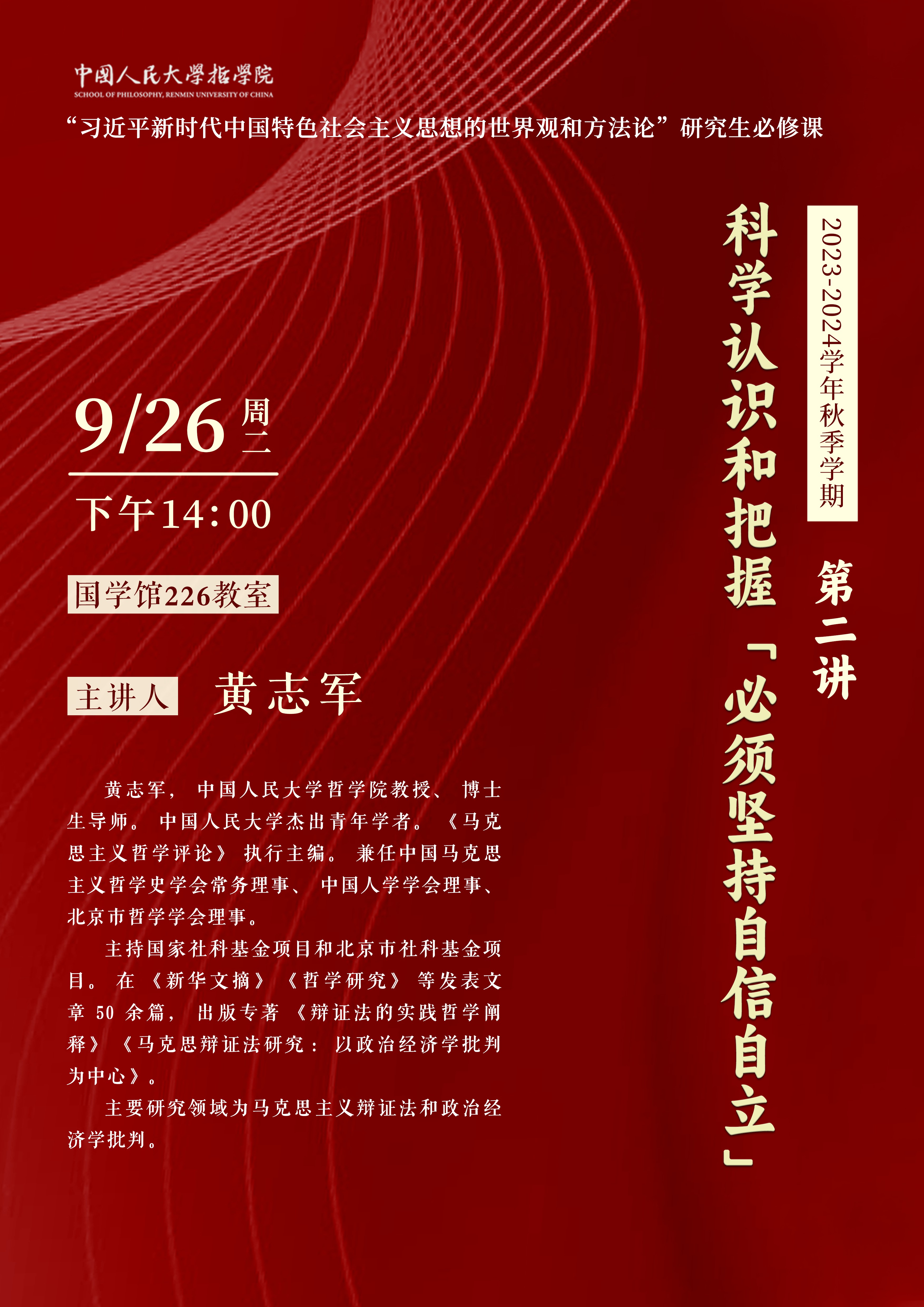 预告|研究生必修课“习近平新时代中国特色社会主义思想的世界观和方法论”第二讲