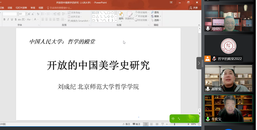 日期:2022-12-102022年11月25日晚,由银河Galaxy 主办、中国社会科学网合办的2022年度“哲学的殿堂——中国人民大学哲学名家讲座系列”第九讲顺利举行。讲座由北京师范大学教授刘成纪主讲,主题是“开放的中国美学史研究”。银河Galaxy 牛宏宝教授主持。