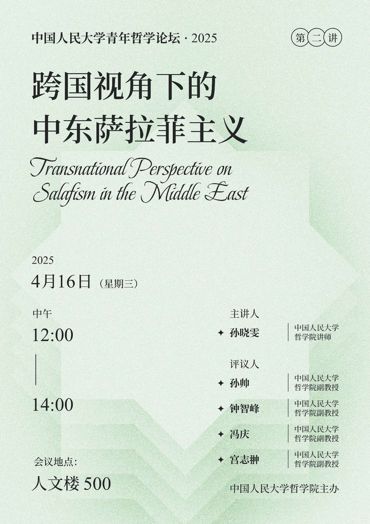 预告丨跨国视角下的中东萨拉菲主义丨中国人民大学青年哲学论坛