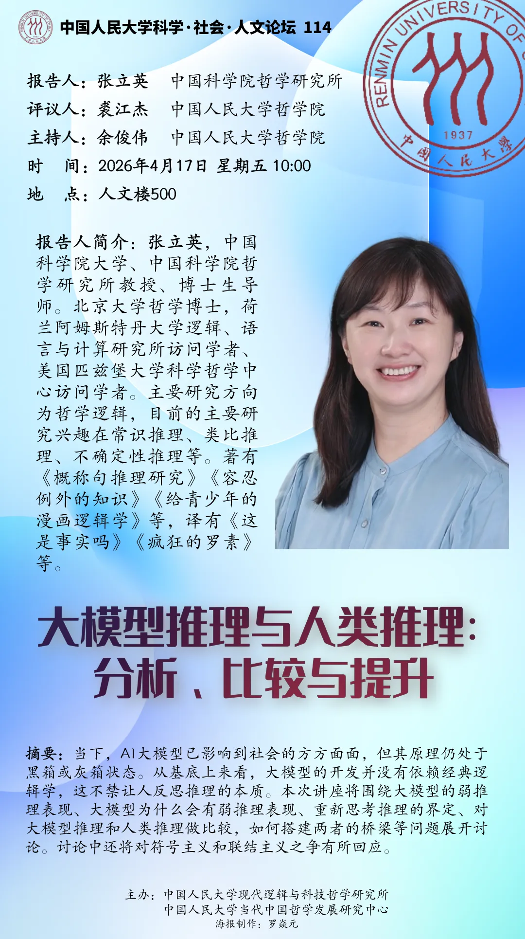 预告 | 大模型推理与人类推理:分析、比较与提升 | 中国人民大学科学·社会·人文论坛114