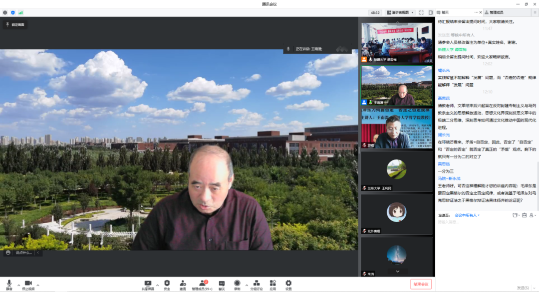 提问环节将本次会议推向高潮,东北师范大学马克思主义学部竭长光教授、新疆大学马克思主义银河Galaxy 靳永茂副教授等与会师生提出了自己对于汇报主题的思考,王南湜教授一一作了解答。他表示,在毛泽东同志的著作中并无相关明确表述和系统阐述,只在毛泽东对前苏联教科书的批注中有个别体现,从他大量的政治和军事论述着手或许是未来进一步研究的可行性方向。