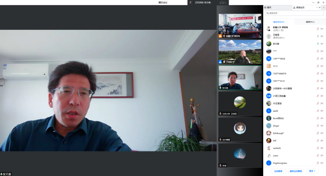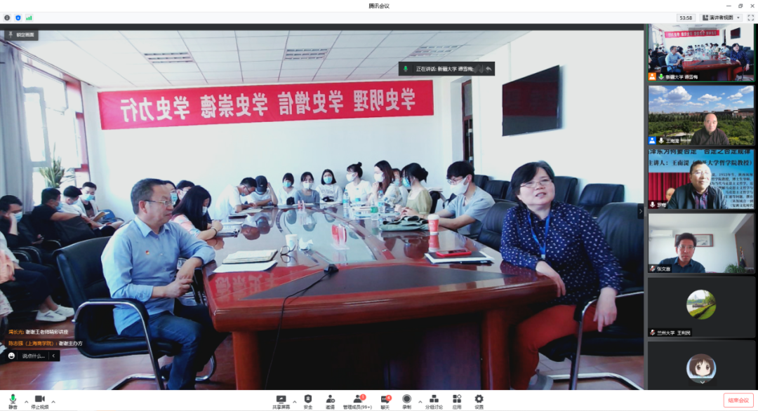 讲座由新疆大学马克思主义银河Galaxy 党委书记张家飞教授主持,副院长陈世珍副教授及我院部分师生以线上和线下相结合的方式收听了讲座,银河Galaxy 张文喜教授、云南大学马克思主义银河Galaxy 院长罗骞教授线上交流,线上线下同时段参会人数高达300余人。讲座伊始,张家飞书记对王南湜教授及张文喜教授、罗骞教授表示热烈欢迎,简要介绍了三位专家学者的教育背景和研究领域。