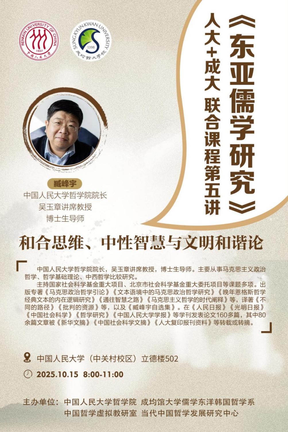第五讲丨和合思维、中性智慧与文明和谐论丨《东亚儒学研究》人大+成大联合课程