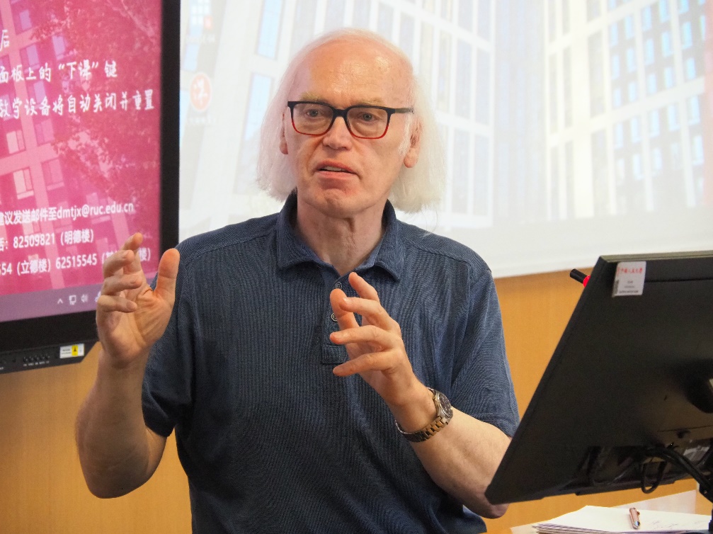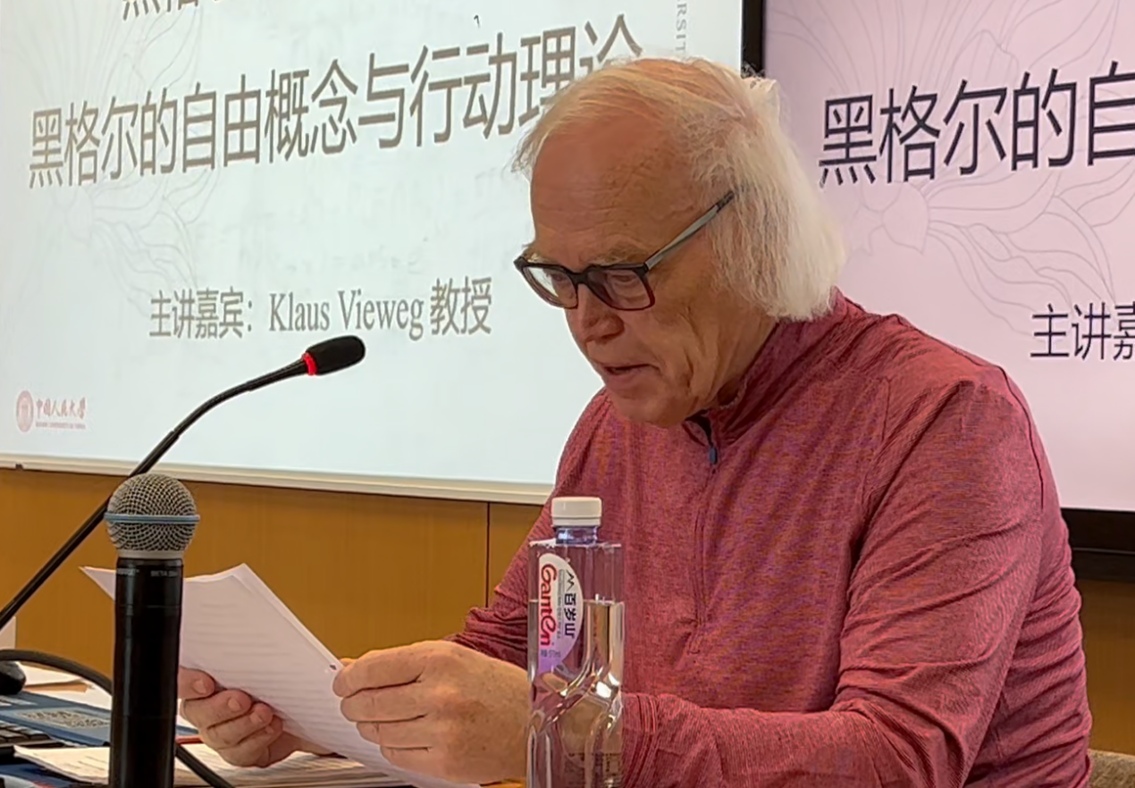 日期:2024-05-012024年4月8-12日,中国人民大学“学科国际前沿教师培训项目”系列讲座暨2024人大德国古典哲学系列讲座“黑格尔的哲学演进:从耶拿到柏林的思想发展”在中国人民大学举行。系列讲座由中国人民大学当代中国哲学发展研究中心、中国人民大学外国哲学研究所主办,特邀德国耶拿弗里德里希-席勒大学(Friedrich-Schiller-Universität Jena;以下简称耶拿大学)哲学研究所德国古典哲学教授克劳斯•费维克(Klaus Vieweg)担任主讲人,为人大师生提供为期五天的系列讲座。