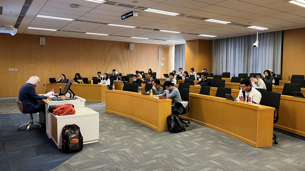 第四场讲座于4月11日在立德楼610教室举行,主题为“黑格尔的法哲学:黑格尔的自由概念与行动理论”。费维克教授指出,《法哲学》中自由意志和行动的理论分为个人的、道德的、伦理的三个阶段。这展现了意志和行动主体从个人经过道德主体并达到伦理主体的自我规定过程,这符合《逻辑科学》中“概念论”部分概念的自身规定模式,即“普遍性-特殊性-个体性”的展开过程。黑格尔坚持实践理性和理论理性的统一,自由意志不仅需要意愿自己,还要能够知道自己。法是自由意志概念的实现,是自由的全部规定的实存。抽象法、道德、伦理生活是法的表现形式,与之相应的是个人的形式-司法行为、道德主体的行动与伦理主体的行动。通过将《法哲学》与希腊悲剧和黑格尔的美学联系起来,费维克教授主要讨论了行动理论中的两个问题,即犯罪与惩罚问题、目的与意图的区别问题。犯罪唤醒了复仇女神欧墨尼得斯,她从内部和外部施加惩罚。正当惩罚的实施使得意志折返回自身,抽象法便转向了道德。行动的归责问题与知情权有关,即对意志的自身规定和行动者的目的的内在知晓。