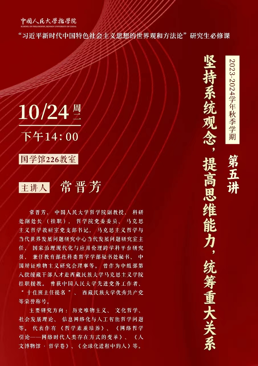 预告|研究生必修课“习近平新时代中国特色社会主义思想的世界观和方法论”第五讲