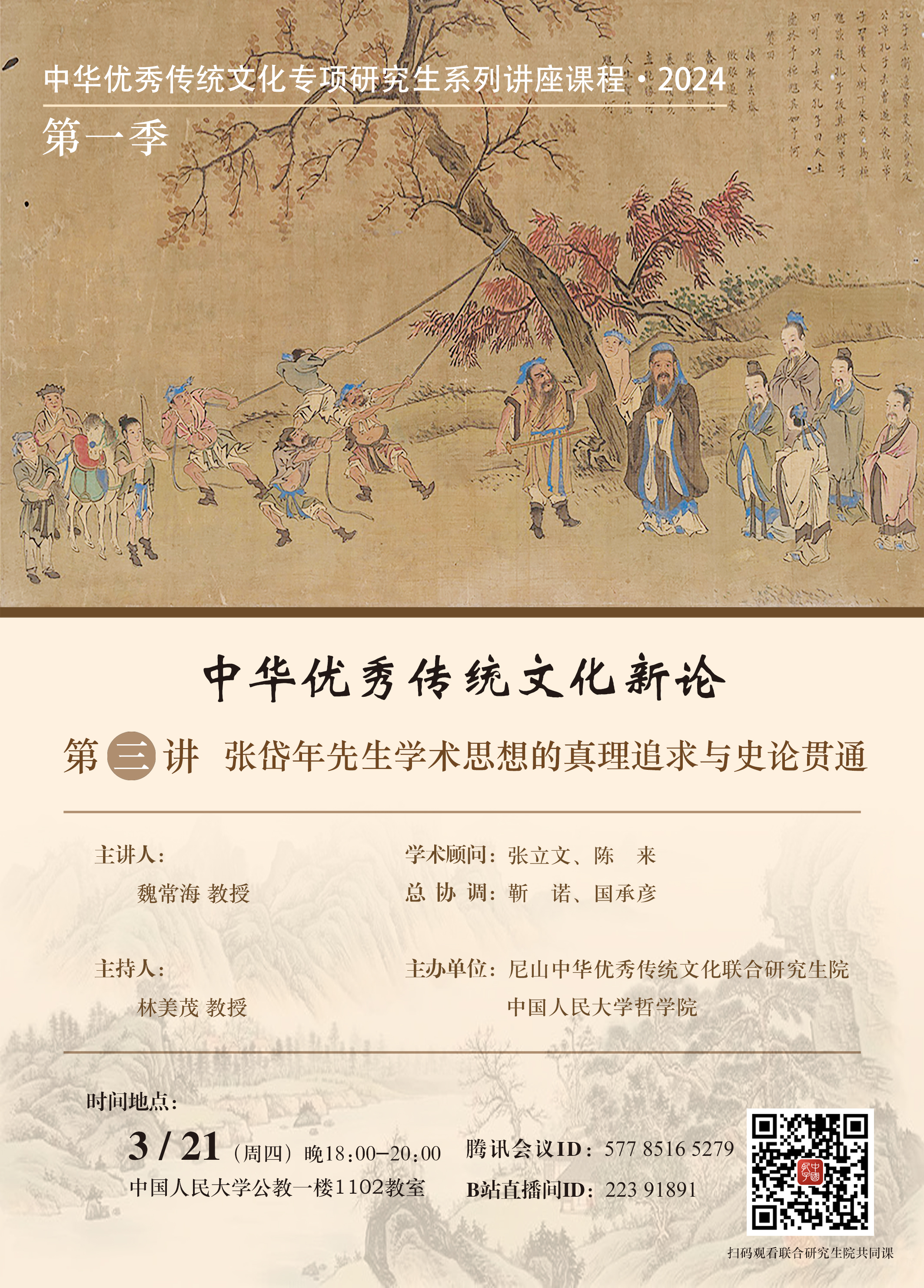 预告丨张岱年先生学术思想的真理追求与史论贯通 丨“中华优秀传统文化新论”系列讲座课程·2024