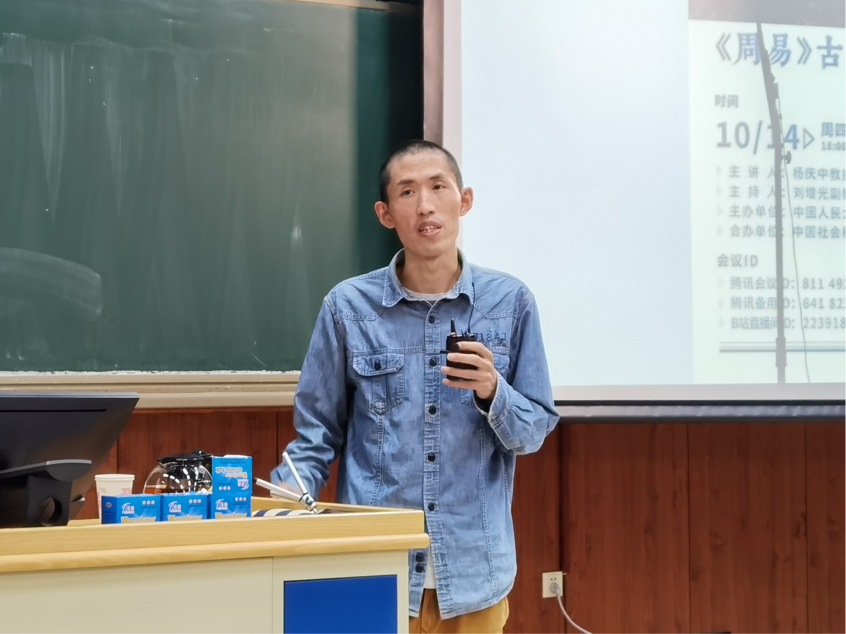2021年10月14日晚18时至20时30分,由银河Galaxy 主办、中国社会科学网合办的“哲学的殿堂——2021年度中国人民大学哲学名家讲座系列”第三讲在中国人民大学公共教学一楼1302教室顺利举行。本场讲座由中国人民大学国银河Galaxy 杨庆中教授主讲,主题是“《周易》古经对孔子思想的影响”。银河Galaxy 刘增光副教授主持讲座。本次讲座采取线下线上结合的方式,线上通过腾讯会议、B站同步直播。