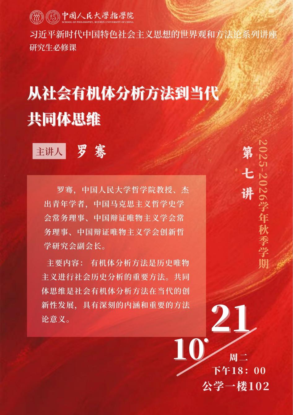 第七讲丨从社会有机体分析方法到当代共同体思维丨习近平新时代中国特色社会主义思想的世界观和方法论系列讲座