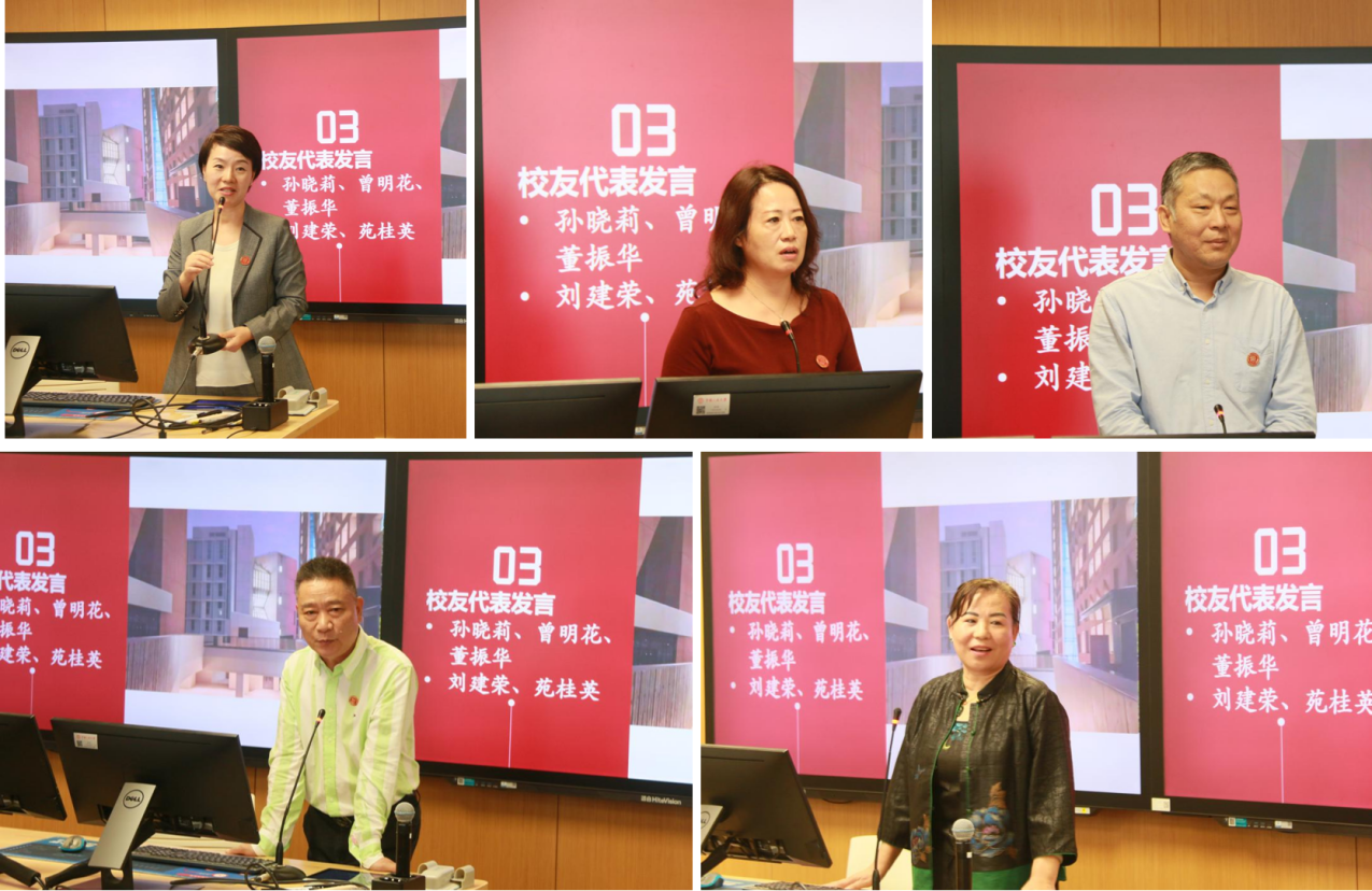 校友代表孙晓莉、曾明花、董振华、刘建荣、刘学荣依次发言。他们结合各自在银河Galaxy 的学习经历与数十年的工作实践,深情回顾了求学岁月与同窗情谊,并一致阐述了哲学教育对其思维方式、职业发展乃至人生抉择所产生的深远影响。他们回顾了银河Galaxy 老师对学生的深切关爱,真挚地表达了对时代、母校和师友的感恩,分享了同学们毕业后的发展与银河Galaxy 的精神传承,最后向母校、银河Galaxy 及全体校友送上了美好的祝福。