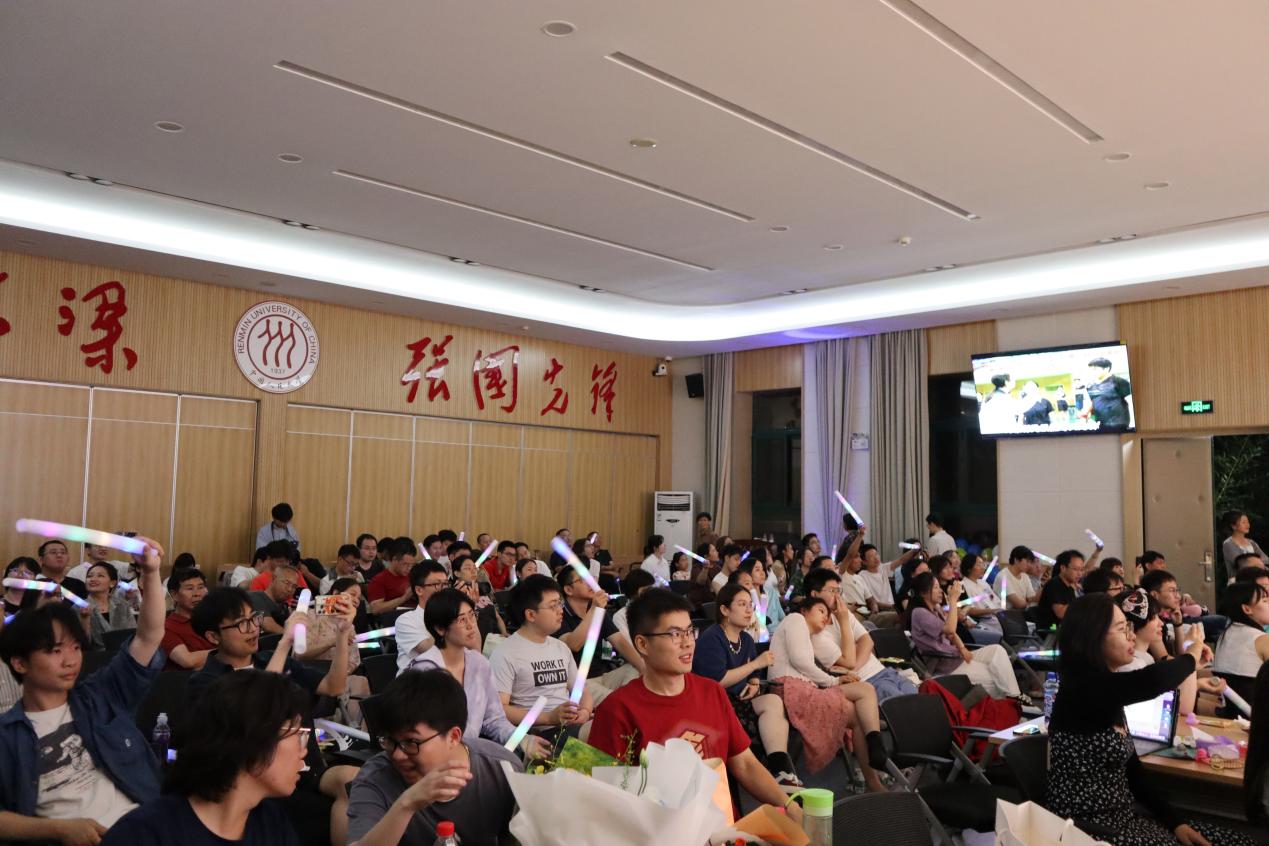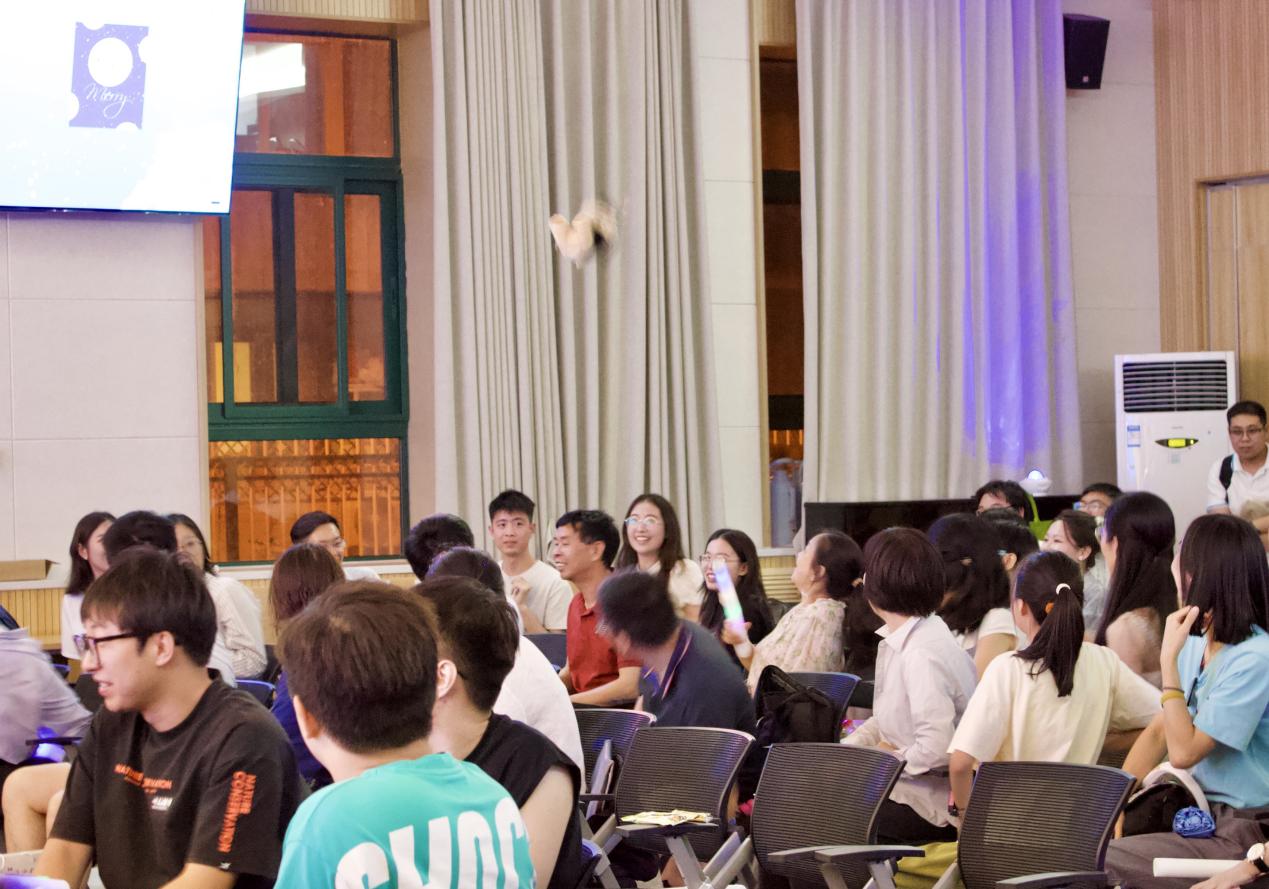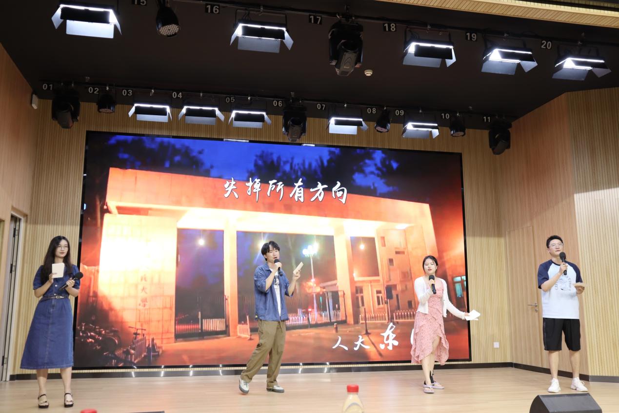 在击鼓传花游戏和礼品发放环节。现场观众以“熊”代“花”,跟着音乐和主持人的口令,将人大小熊“飞速”传递。最终几位“花落自家”的幸运同学也上台分享了自己在银河Galaxy 印象最深刻的人或事。笑声中一幕幕闪过的,是金子般的求学记忆。
