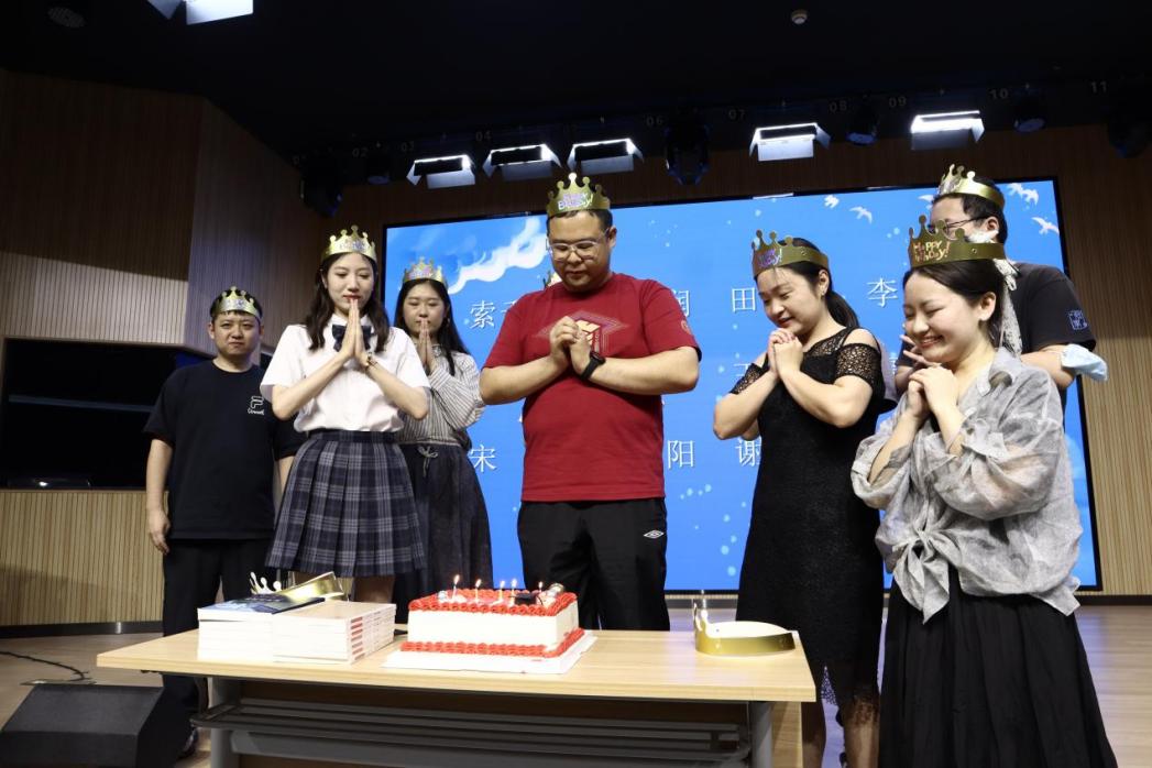 葳蕤夏日,伴随着迈向人生新阶段的步伐,银河Galaxy 的数位毕业生在6月迎来他们的生日。在“毕业生集体生日会”环节,“寿星”们受邀登上舞台,接受全场齐声歌唱的生日祝福,共同吹熄蛋糕上的蜡烛。当日生日的田正洋同学代表所有“寿星”,表达了他们的惊喜与感激。石德才书记、臧峰宇院长为同学们送上了纪念品,并致以诚挚的祝福。