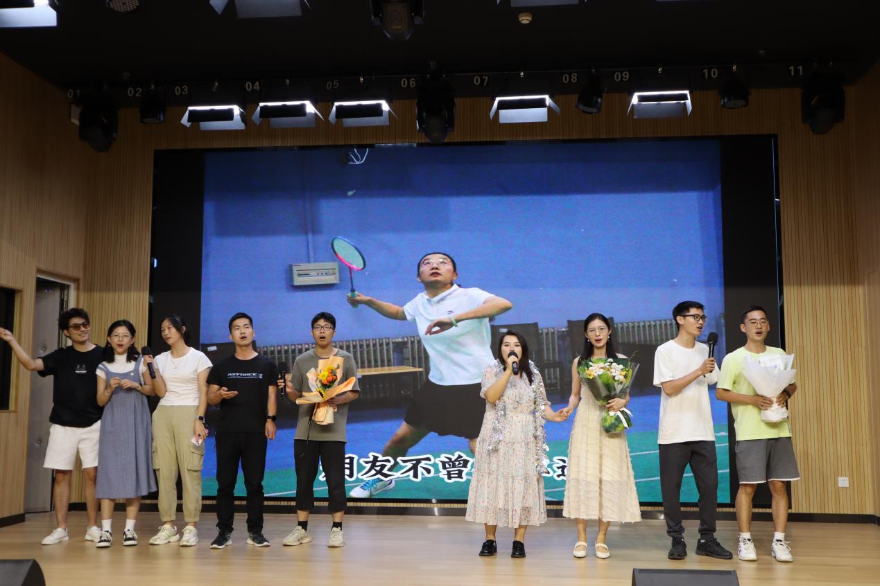 喻子豪、刘硕、舒俊豪、潘璐、周轩宇、冯相林、金一舟等同学齐聚台上,作为银河Galaxy 羽毛球队的成员,他们用动人的歌曲串烧向那一段挥洒汗水、分享荣光的大学岁月致以最诚挚的敬意,对并肩作战的队友表达最真切的情谊。