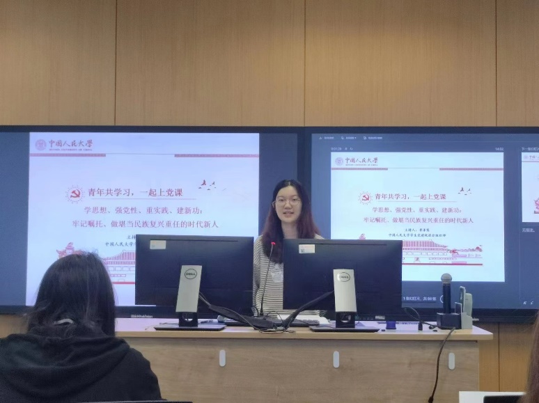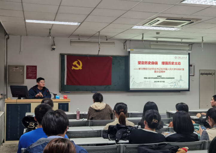 2021级博士1班党支部、2022级博士1班党支部和2022级博士2班党支部邀请马克思主义银河Galaxy 博士生宣讲团成员吕明洋为支部成员带来以《坚定历史自信,增强历史主动——学习贯彻习近平总书记考察中国人民大学重要讲话精神》为主题的宣讲,结合党的“二十大”精神和全国两会精神,融合习近平总书记到中国人民大学考察调研时的重要讲话精神,勉励大家要为强国建设和民族复兴的伟业添砖加瓦,传承红色基因。2022级硕士1班党支部和2022级硕士2班党支部邀请延河讲师团成员进行专题宣讲,契合主题党日开展深度理论学习,在专题学习中努力提升党性修养,做到知其言更知其义、知其然更知其所以然。