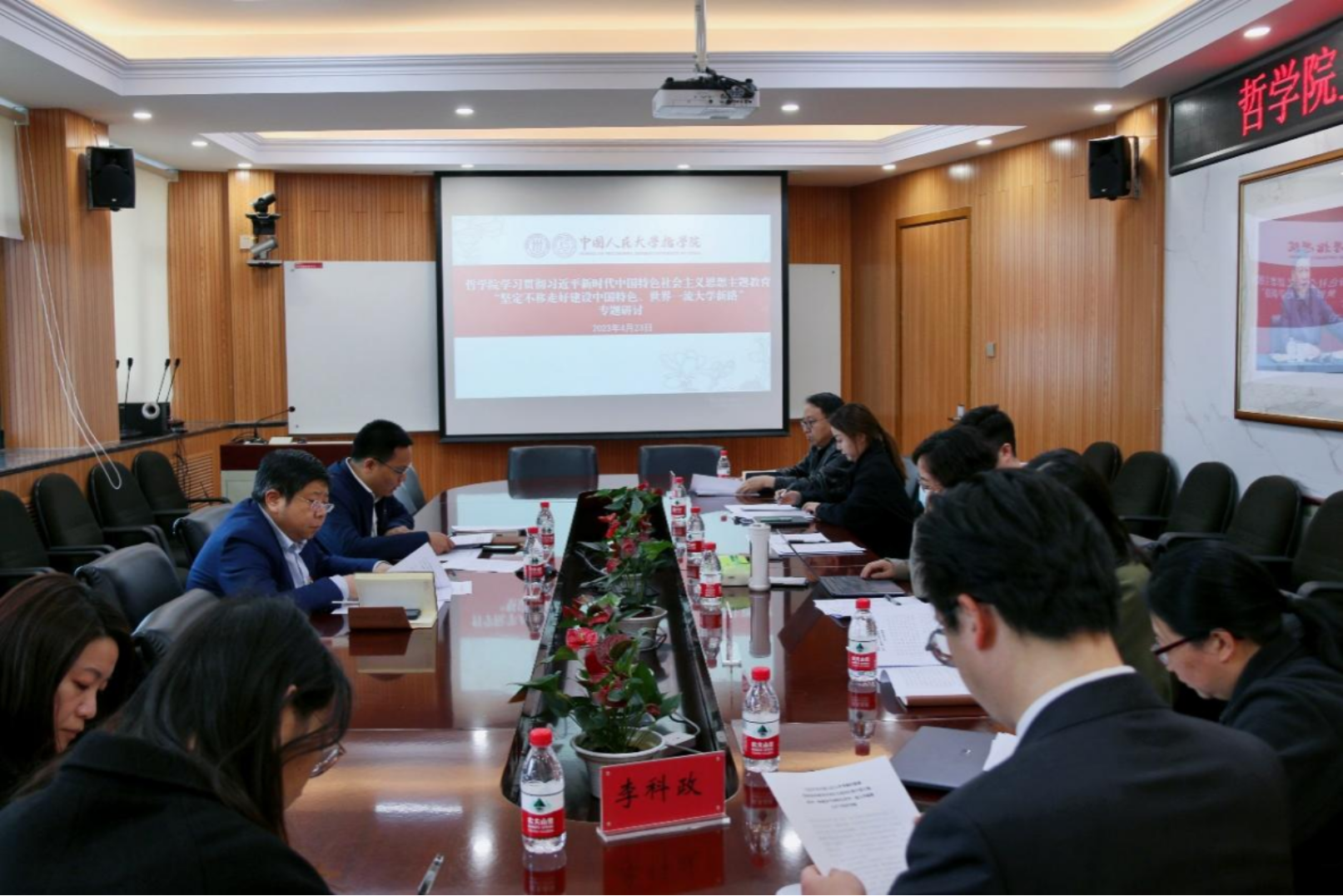 中国哲学教研室党支部开展“牢记嘱托、勇毅前行——探索中国哲学的新路专题研讨”主题党日活动。支部党员充分探讨自身教学、科研情况,把马克思主义基本原理同中国具体实际相结合、同中华优秀传统文化相结合,以思考和回答人民之问、时代之问为己任,开展具有中国特色、中国内涵的中国哲学研究。科学技术哲学逻辑学教研室联合党支部开展“回顾和思考——深入学习和深刻领会习近平总书记在中国人民大学考察调研时的重要讲话精神”主题党日活动,在热烈讨论中深入领会习近平总书记的殷殷嘱托,牢记“为谁培养人、培养什么人、怎样培养人”的教育根本问题,并进一步落实到课堂教学中,学生培养中。
