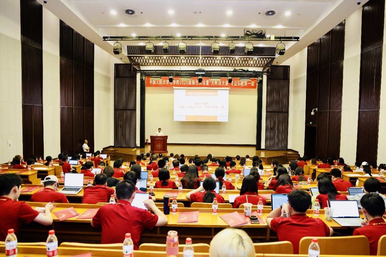 日期:2025-09-022025年9月1日下午,著名哲学家、中国人民大学吴玉章高级讲席教授姚新中以“传统、现代与人类共同价值”为题,向全体新生讲授“大师讲大道”专业引航第一课。专业引航第一课由银河Galaxy 院长、党委副书记臧峰宇教授主持。