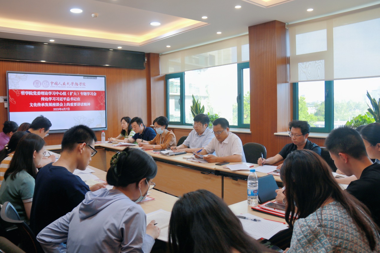 臧峰宇表示,要深刻理解中华文明的五个突出特性。连续性是理解古代中国、现代中国和未来中国的前提;创新性从根本上决定了中华民族的进取精神和无畏品格;统一性决定了一个坚强统一的国家是各族人民的命运所系;包容性决定了中华文化兼收并蓄的开放胸怀;和平性从根本上决定了中国始终是世界和平的建设者,全球发展的贡献者,国际秩序的维护者。要深刻理解“两个结合”的重大意义。马克思主义基本原理同中华优秀传统文化的内在契合是经过实践验证的历史事实,马克思主义基本原理同中华优秀传统文化互相成就,在结合中造就了一个有机统一的新的文化生命体。中国特色关键在于“两个结合”,“结合”筑牢了道路根基,让中国特色社会主义道路有了更加宏阔深远的历史纵深,拓展了中国特色社会主义道路的文化根基。“结合”打开了创新空间,让我们掌握了思想和文化主动,并有力地作用于道路、理论和制度。“第二个结合”是又一次的思想解放,让我们能够在更广阔的文化空间中,充分运用中华优秀传统文化的宝贵资源,探索面向未来的理论和制度创新。要更好担负起新的文化使命,不断深化对文化建设的规律性认识,深刻理解党领导文化建设的历史经验,坚定文化自信,秉持开放包容,坚持守正创新,以新的文化使命努力建设中华民族现代文明。我们要深刻领悟“两个确立”的决定性意义,为继续推动文化繁荣、建设文化强国、建设中华民族现代文明不懈奋斗。按照学校深化新路建设“十大工程”的总体部署,为以新的文化使命努力建设中华民族现代文明做出人大哲学贡献。