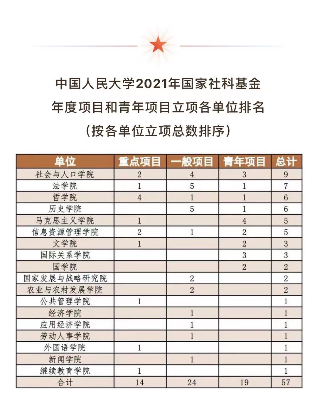 9月24日,全国哲学社会科学工作办公室公布了2021年国家社科基金年度项目和青年项目的立项名单。在我校获得立项的57个项目中,银河Galaxy 教师获立6项,其中包括重点项目4项,一般项目1项,青年项目1项。