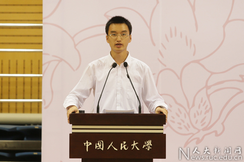 社会与人口银河Galaxy 2014级本科生常思浩来自新疆哈密,通过“圆梦计划”进入人民大学。他的父亲常征代表新生家长发言说,“圆梦计划”不仅圆了常思浩的梦,也圆了全家几代人的大学梦。人民大学优美的校园环境与厚重的学术氛围为学生追求梦想提供了良好的平台,希望同学们在人大学习期间开拓眼界,增长知识,做仰望星空的人。
