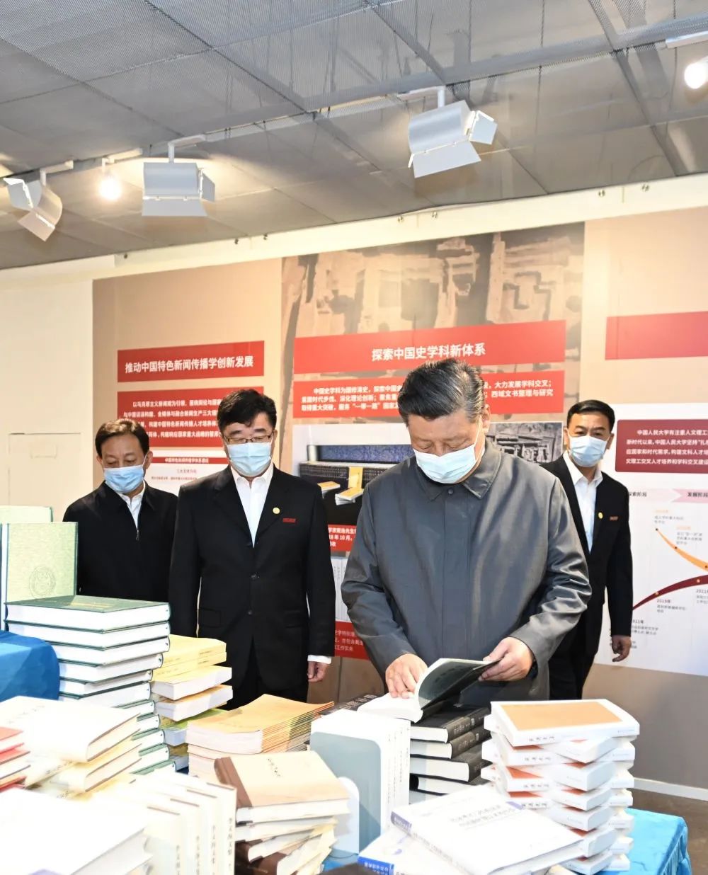 2022年4月25日,习近平总书记在中国人民大学考察调研时翻阅清史著作