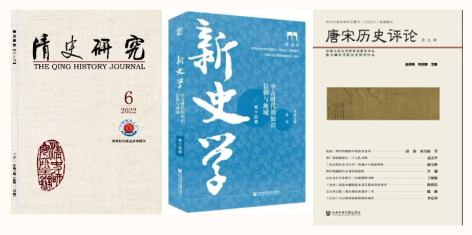 《清史研究》《新史学》《唐宋历史评论》三种刊物进入CSSCI来源目录,位居国内高校史学机构第一。《民国史研究》《生态史研究》《西域历史语言研究集刊》《蒙古学研究丛刊》《北方民族考古》等构成全方位服务学界的集刊方阵。《清史研究国际通讯》涵盖六种语言,已成为国际范围内信息最丰富的清史研究信息平台。