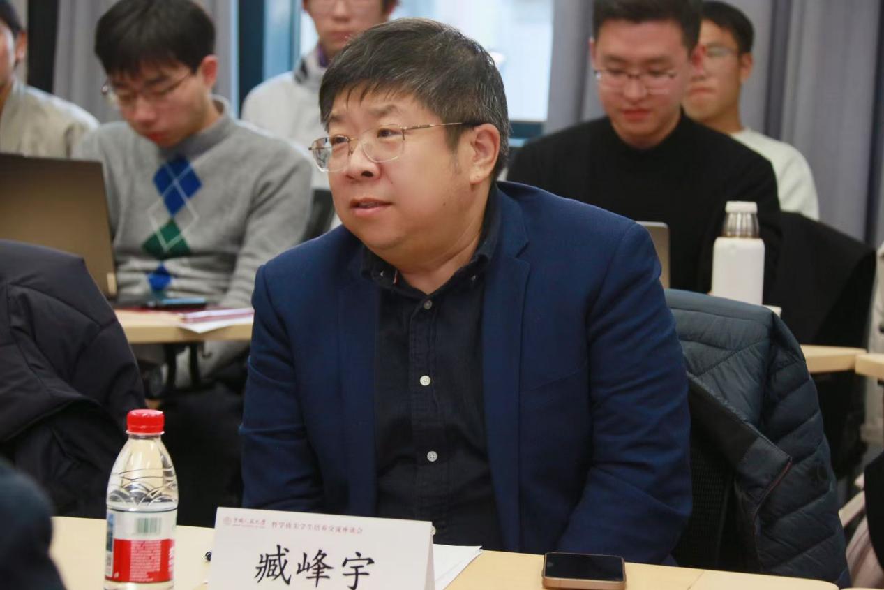在自由研讨交流环节,师生们就虚拟教研室的实效发挥、历史性概念在现代化实践及自主知识体系建设中的作用等问题进行了深入的讨论和交流。臧峰宇院长亲切回应了同学们的提问,他分享了自己从事哲学教学与研究的体会,指出作为新一代哲学人,需以大历史观连通古今,融汇中西,立足时代问题意识解读哲学经典,秉持文化主体性,以新文明观审视和思考哲学问题。